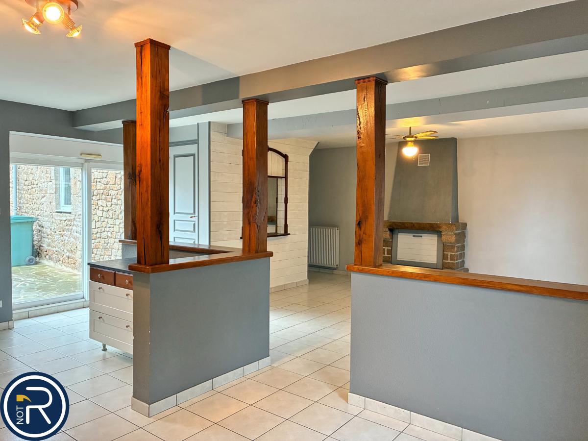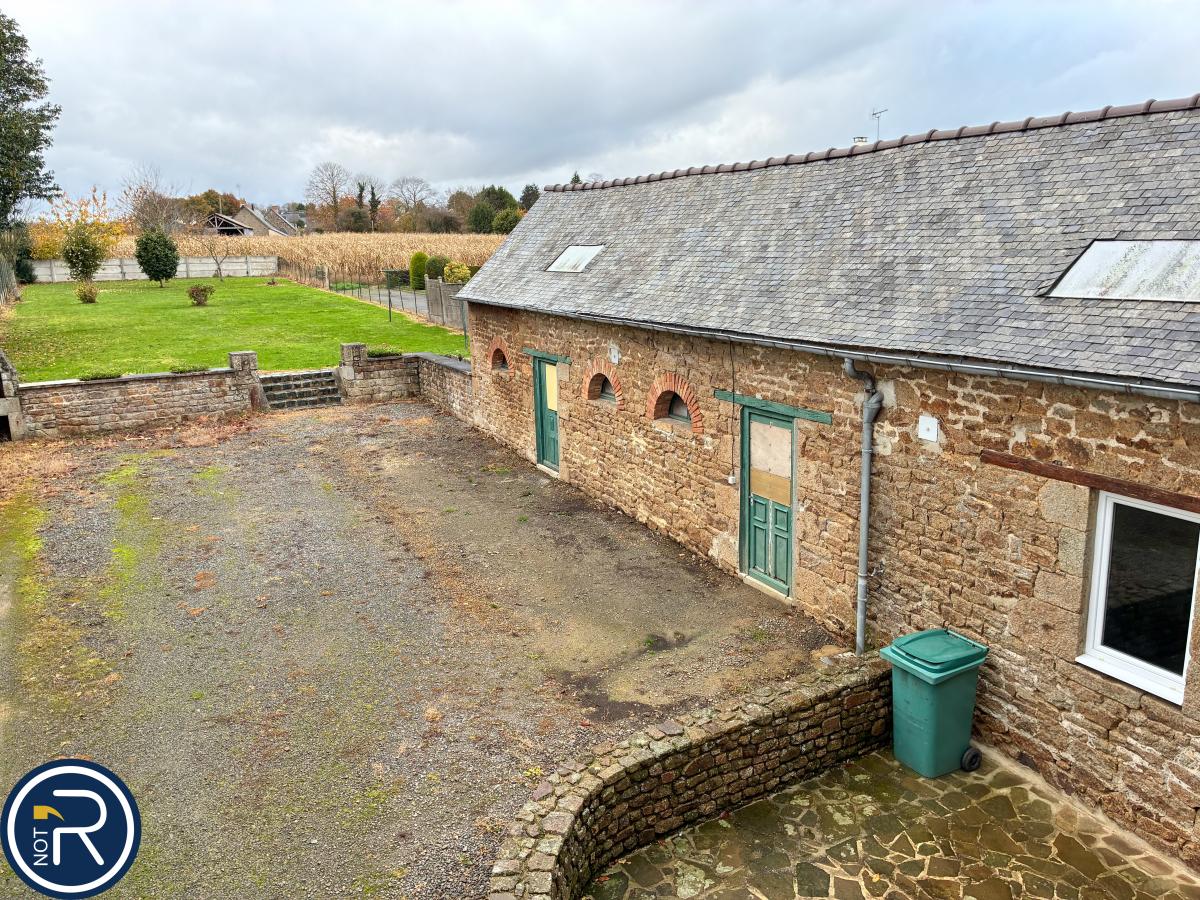 Une maison en pierres offrant un réel potentiel d'agrandissement et comprenant au rez de chaussée : entrée sur séjour/salon avec cheminée, cuisine ouverte, chaufferie/buanderie, w-c, atelier avec grenier au-dessus.