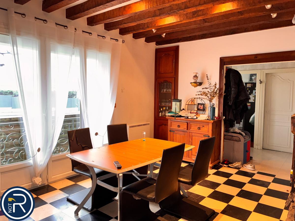 Un pavillon sur sous-sol comprenant au rez-de-chaussée: entrée, cuisine aménagée, séjour (cheminée), salon, deux chambres, salle de bains, WC et placard.