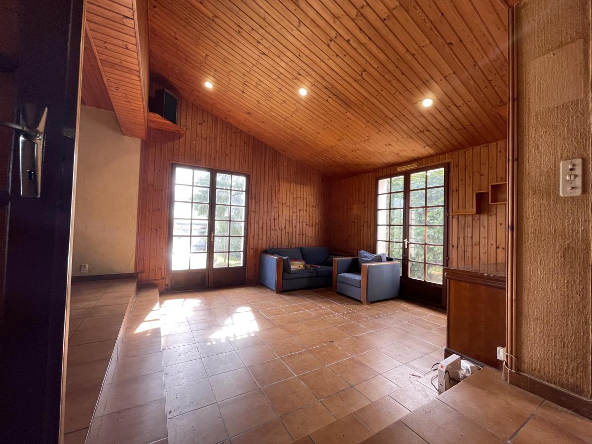 - Une entrée, un wc, une pièce de vie lumineuse (salon, salle à manger, cuisine) d'environ 40m² avec accès sur le jardin.