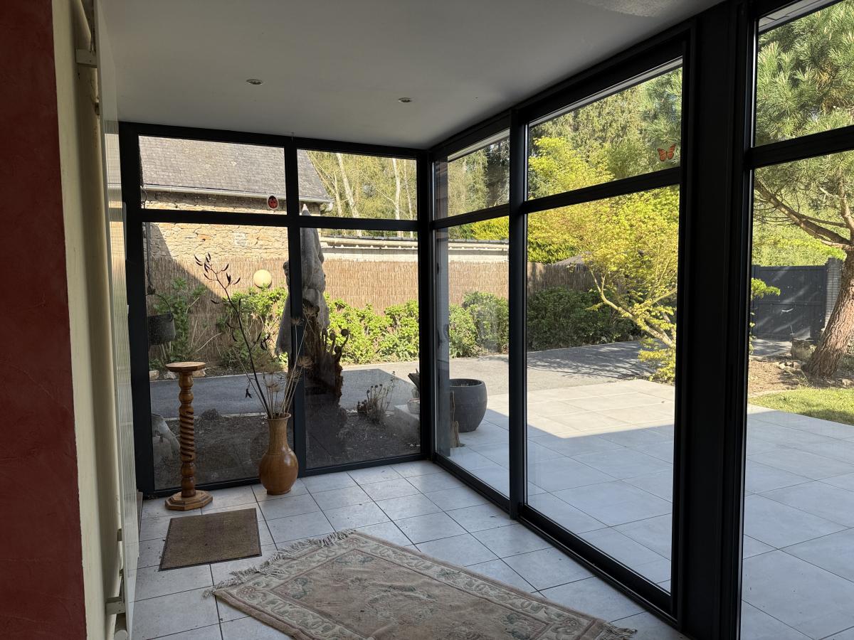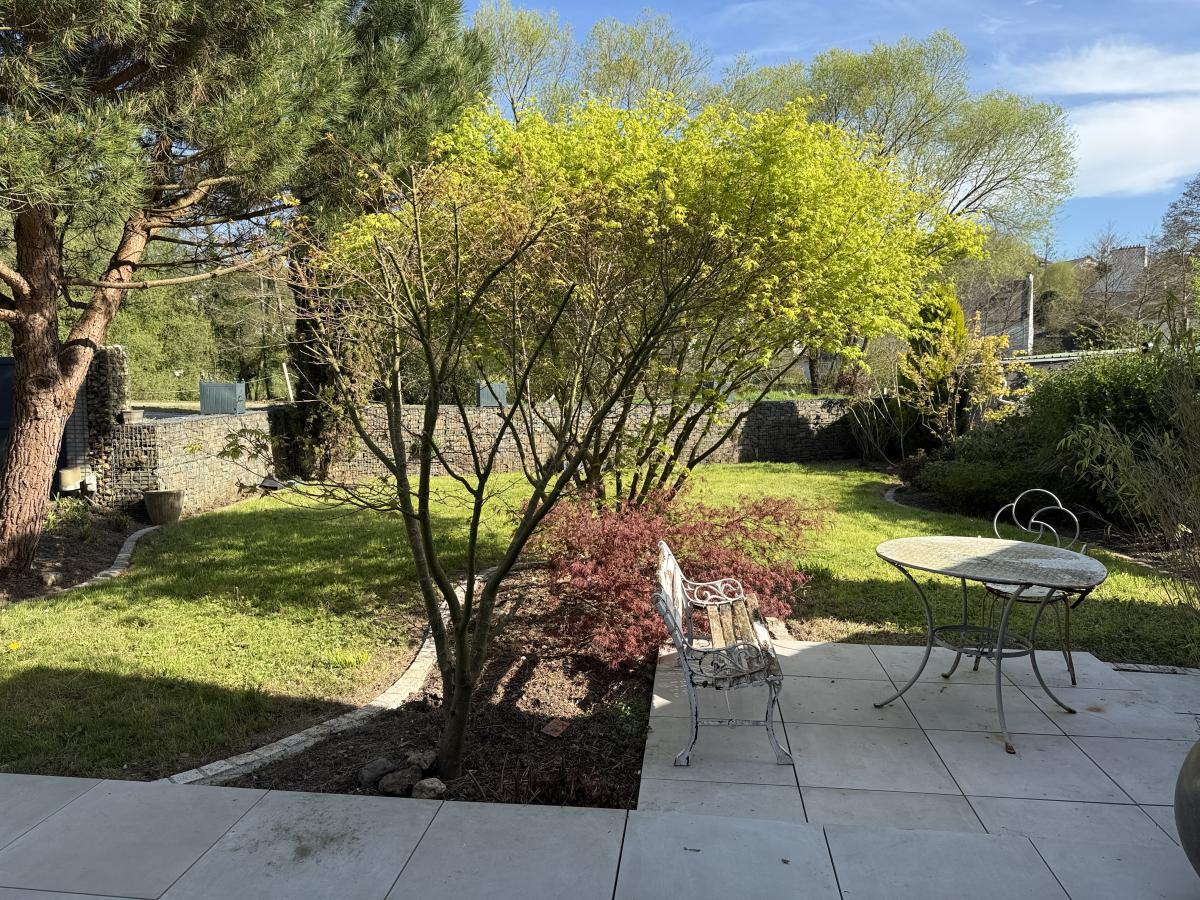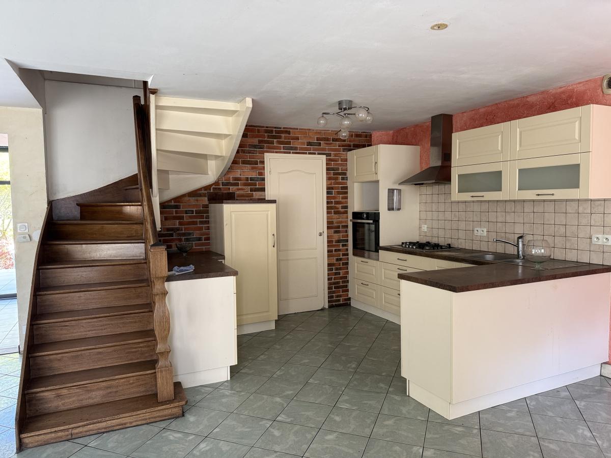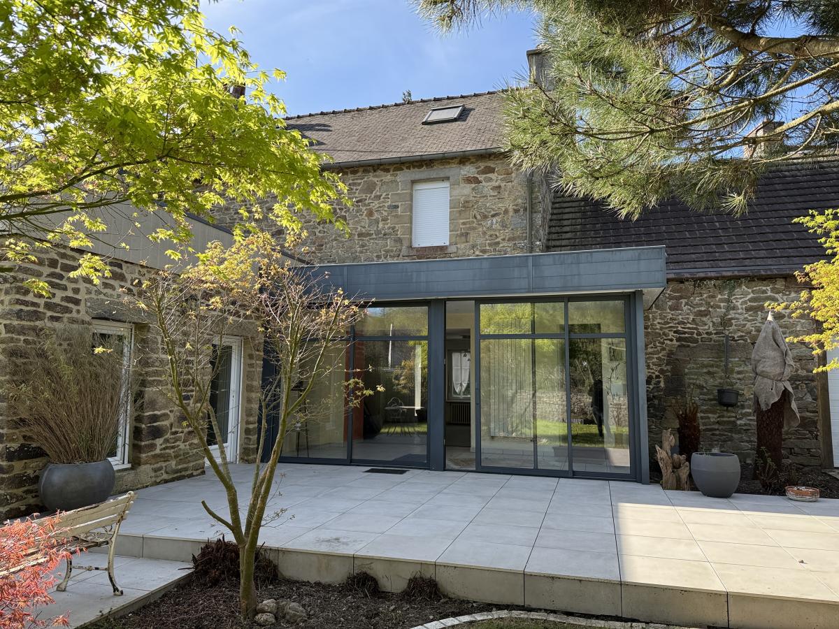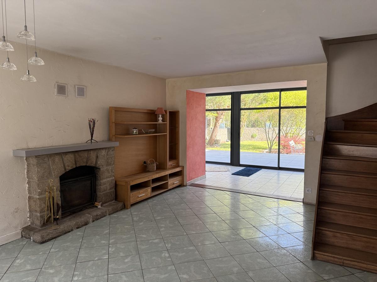 Belle maison en pierres, mitoyenne, en centre bourg, sur agréable jardin clos à l'arrière de 508 m2, terrasse et garage. La maison se compose en rez de chaussée, d'une belle pièce de vie (cuisine meublée/équipée ouverte sur salle et salon cheminée insert / véranda donnant sur jardin, une chambre, wc, salle d'eau ; étage de trois chambres, salle d'eau et wc ; grenier au-dessus.