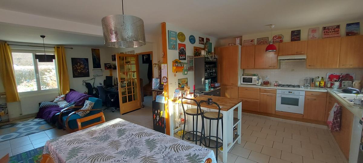 A vendre maison à usage d'habitation comprenant au rez-de-chaussée: entrée, salle-à-manger - séjour avec cuisine ouverte, trois chambres, salle de bains, WC indépendant, chaufferie. Un grenier aménageable d'environ 80m², le tous sur un terrain clos d'environ 506m².