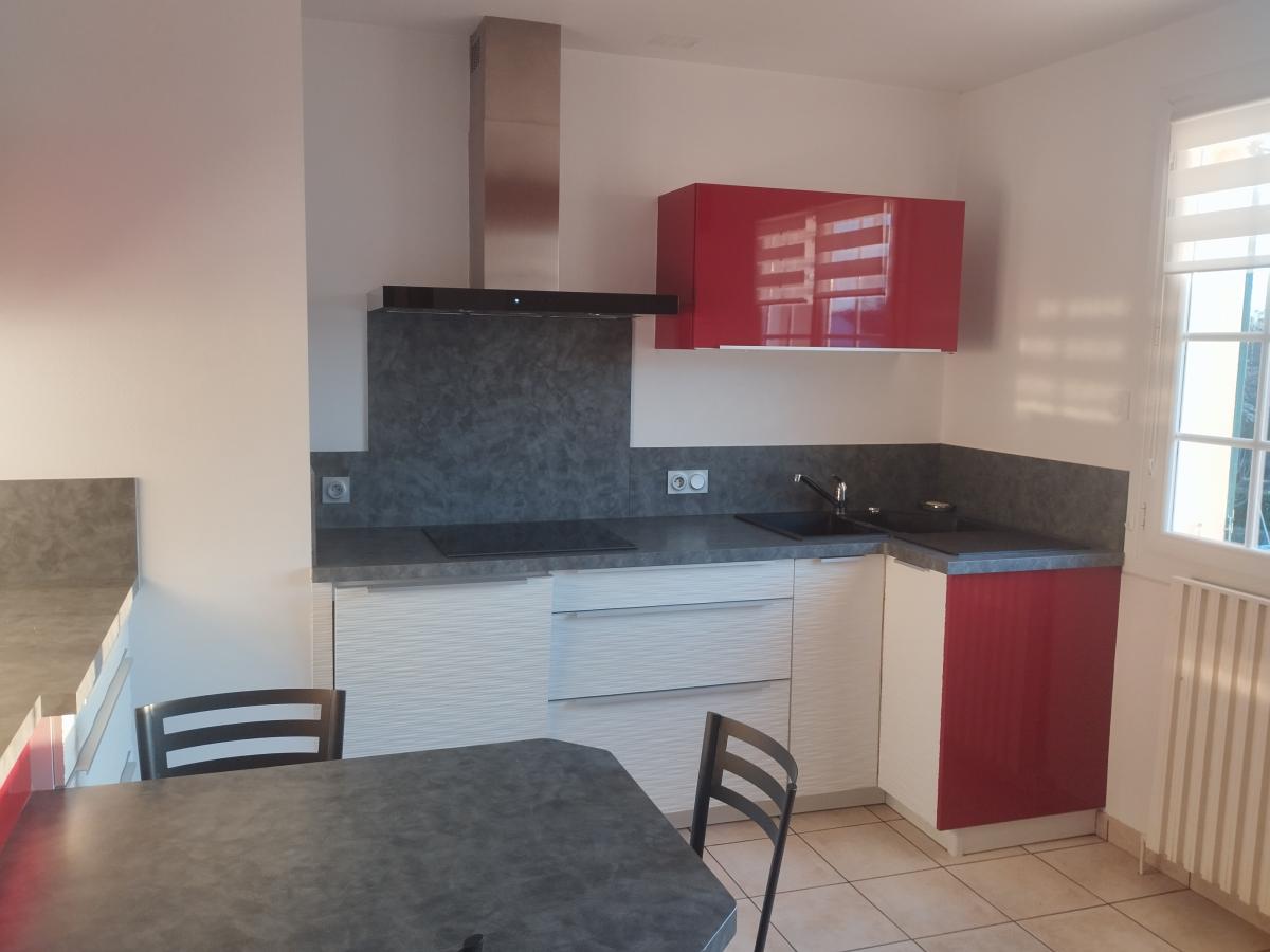 - au rez-de-chaussée : une entrée, une cuisine aménagée et équipée (frigo, four, lave vaisselle, hotte et plaque induction), salon-salle à manger, dégagement, wc, salle d'eau, trois chambres avec placards ;