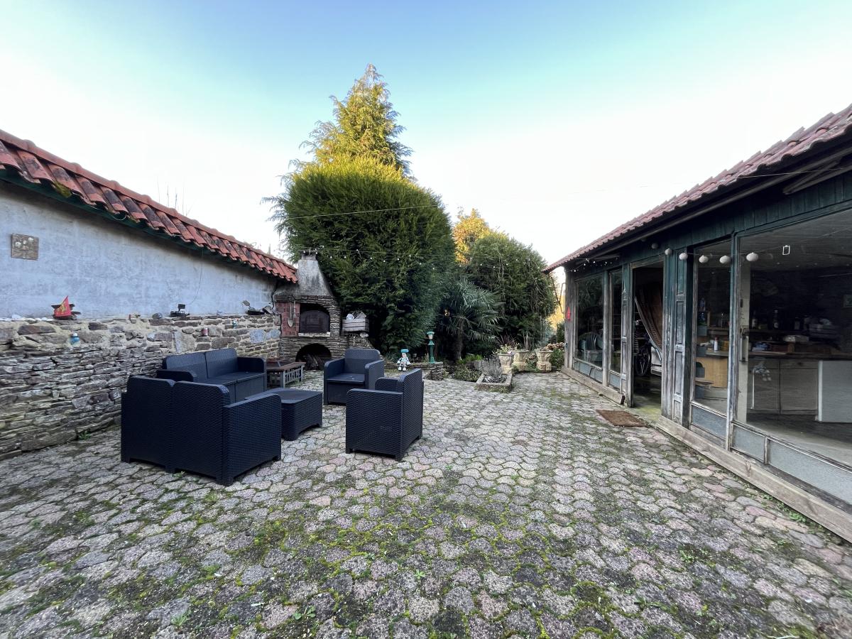 Terrasse avec cuisine d'été, abri, jardin clos de mur et atelier avec cave.