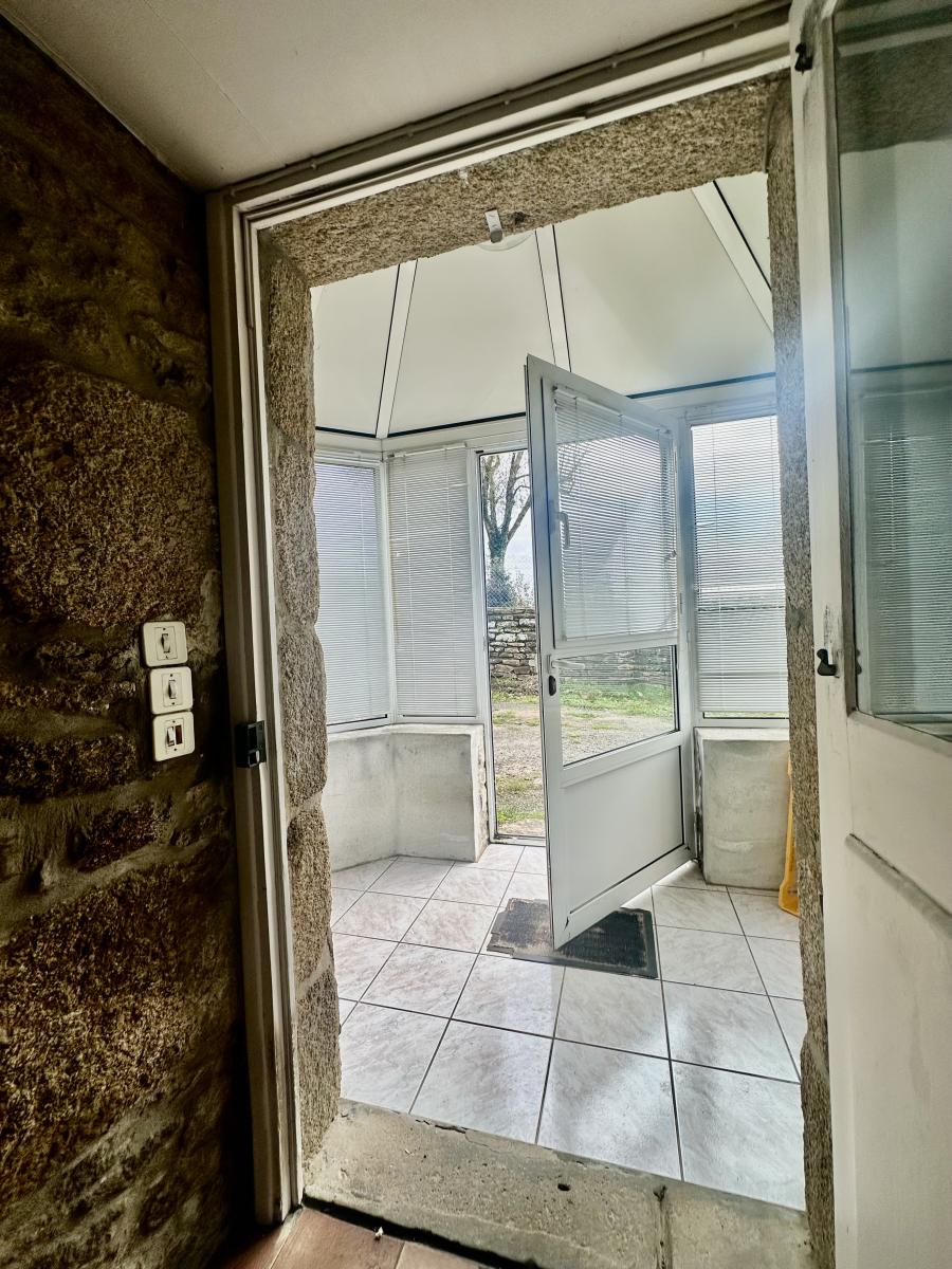 Elle dispose d'une vaste pièce de vie avec une cuisine ouverte avec cheminée poêle, un accès sur l'arrière de la maison.
