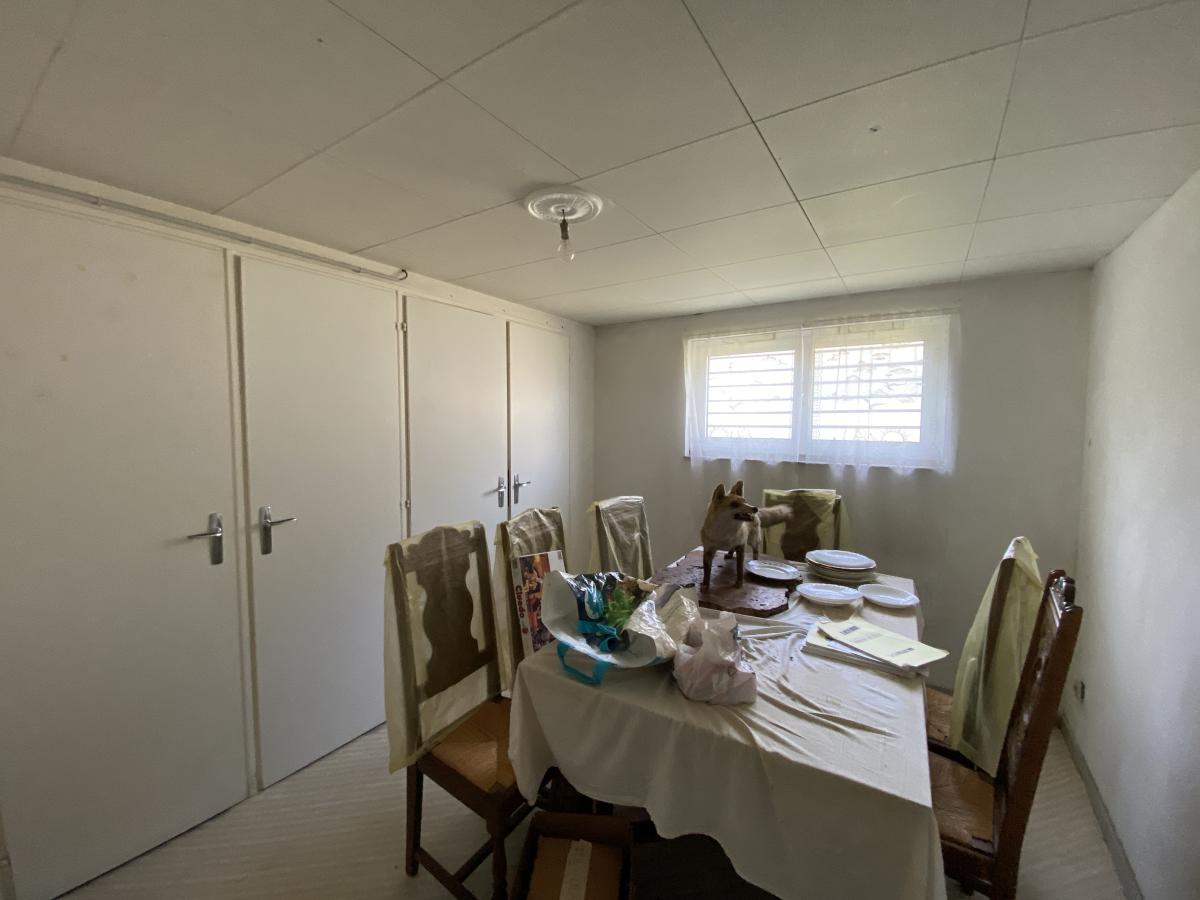Un sous-sol avec garage, atelier, lingerie...