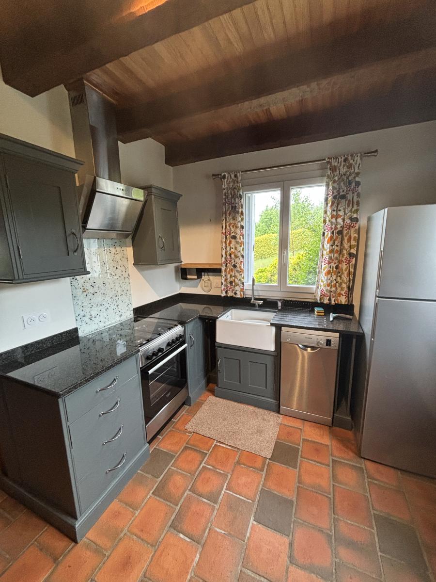 -au rez-de-chaussée : une entrée, un salon/séjour, une cuisine, une chambre, une salle de bain avec douche, un WC