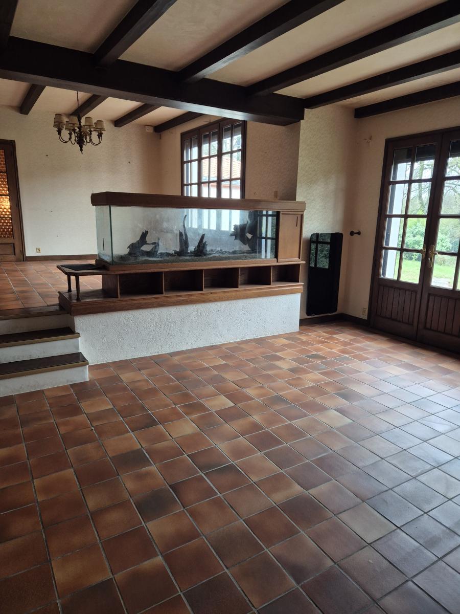 La maison comprend : hall d'entrée, salle à manger et salon avec cheminée, cuisine, arrière-cuisine et buanderie et un wc. Côté nuit 3 chambres, 1 salle de bains et 1 salle d'eau et 1 wc. La maison est complétée par une véranda ainsi qu'un double garage non attenant avec préau.