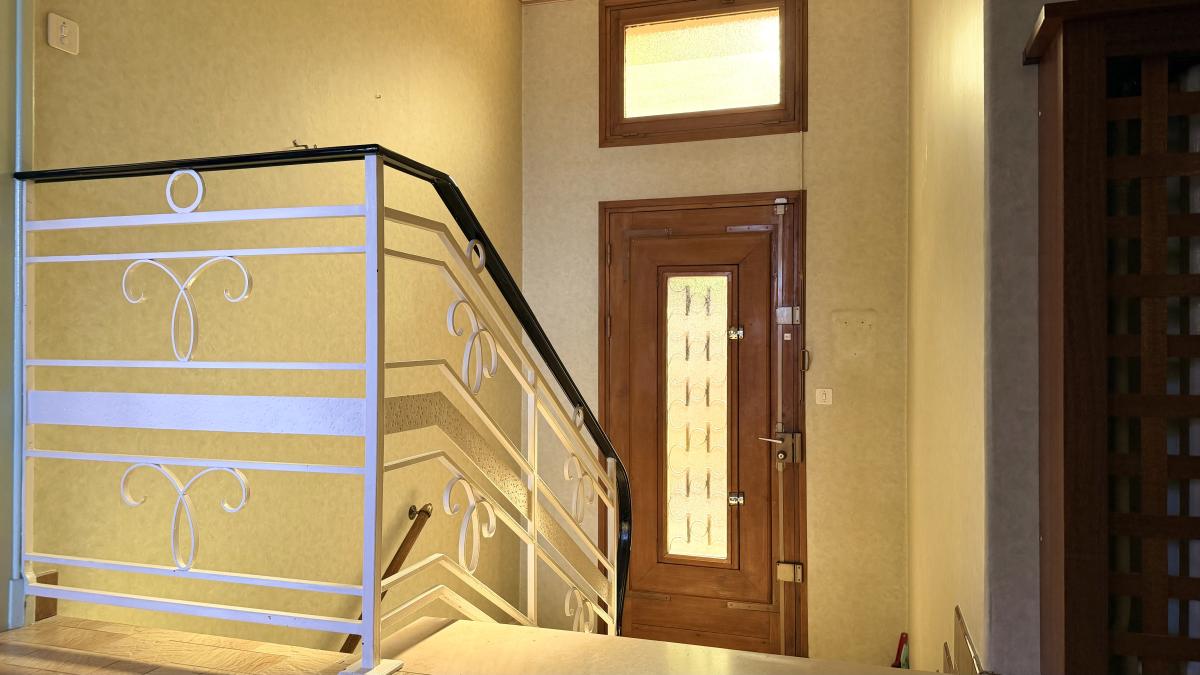 Au RDC : Une entrée sur un escalier en pierre d'Hauteville.