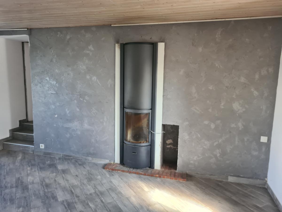 Au rez-de-chaussée, nous avons : entrée, cuisine ouverte sur séjour avec cheminée, salon, wc, garage.
