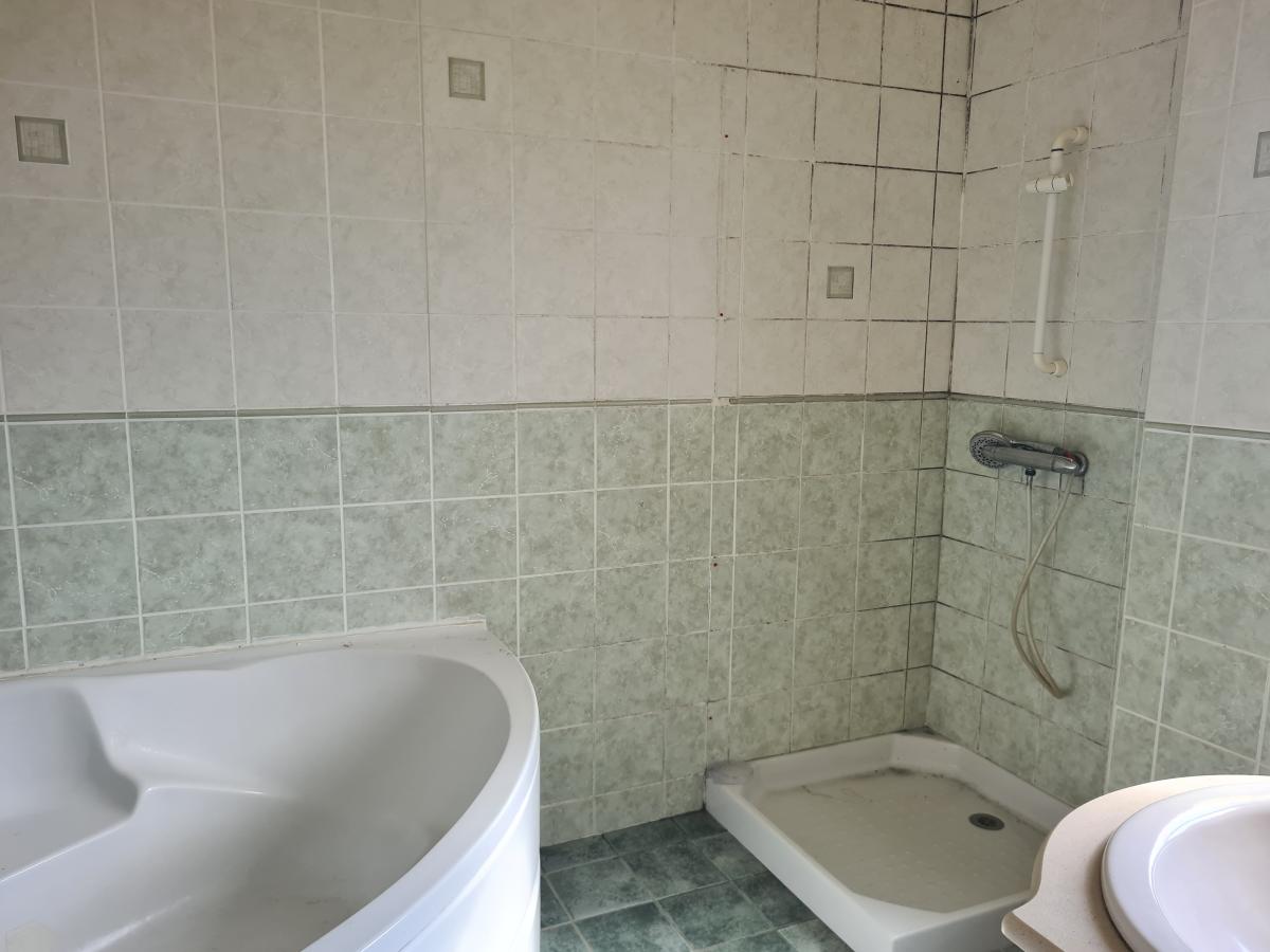 A l'étage, nous avons quatre chambres dont une avec dressing, wc, salle de bains (baignoire et douche).
