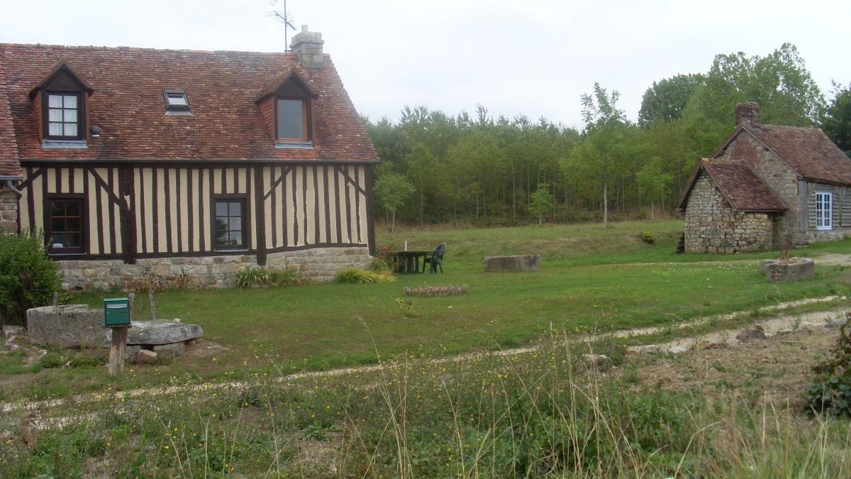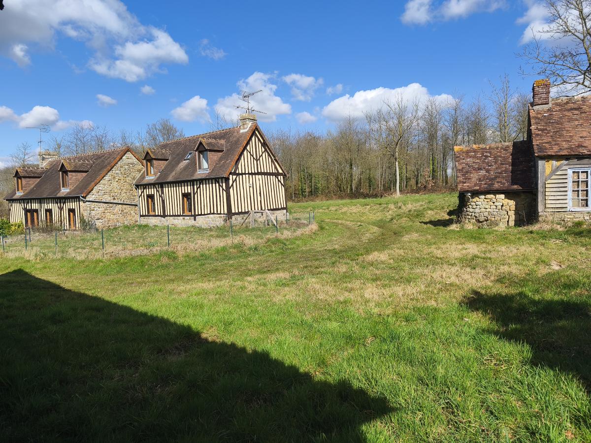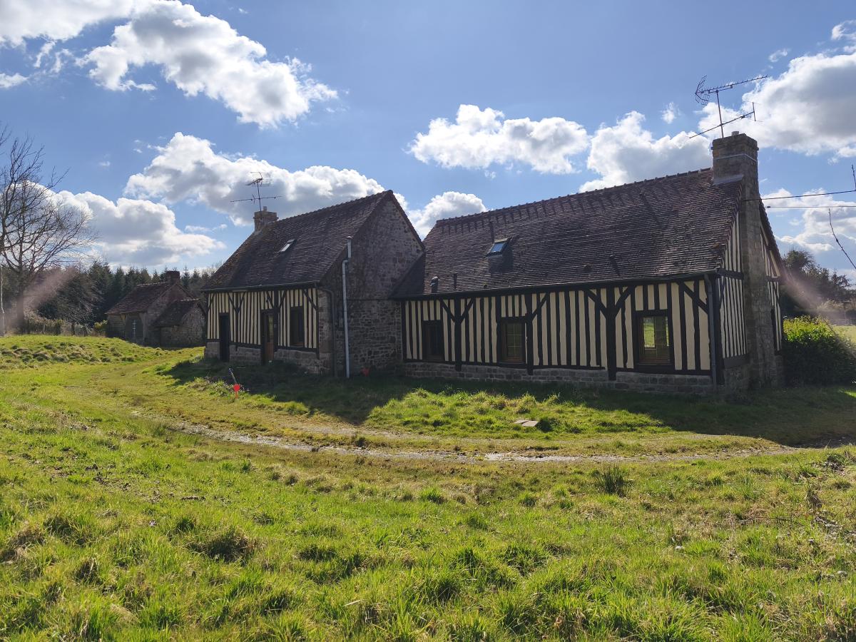 A proximité de l'axe Domfront - Le Teilleul, en campagne, ensemble immobilier composé de 2 maisons attenantes, en colombage, de 3 pièces principales chacune, sur env. 2.200 m² de terrain .