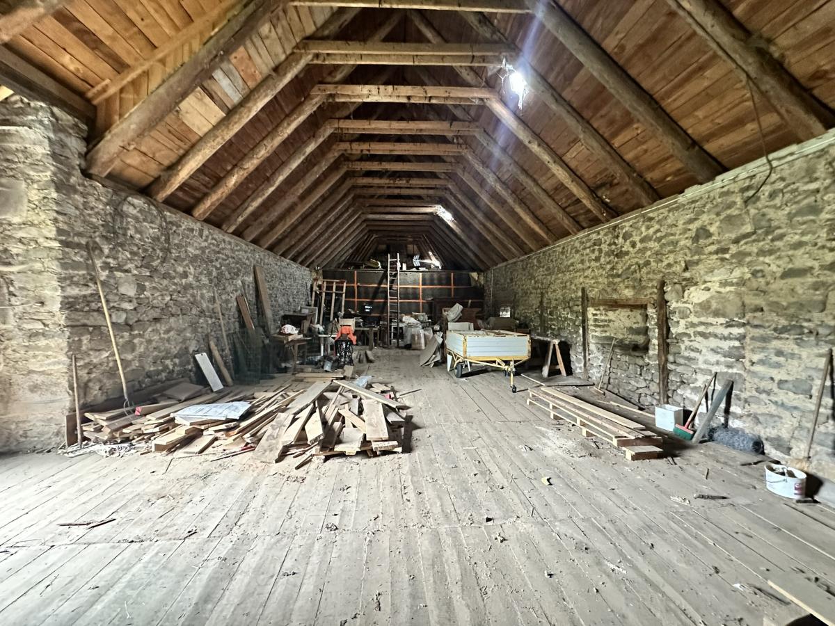 Les logements sont équipés d’un chauffage avec des anciens radiateurs électriques et un poêle à bois. Les fenêtres sont en double vitrage bois. L’ensemble du bâtiment présente un charme authentique, avec une ancienne étable attenante et, à l’étage, une grange avec un espace atelier.