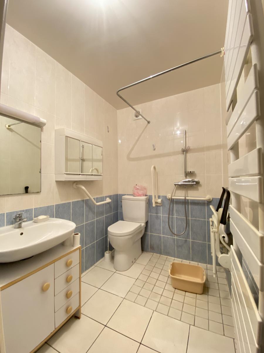 * Rez-de-chaussée : une entrée, un salon/salle à manger, une salle de douches avec WC, une cuisine et une chaufferie/buanderie.