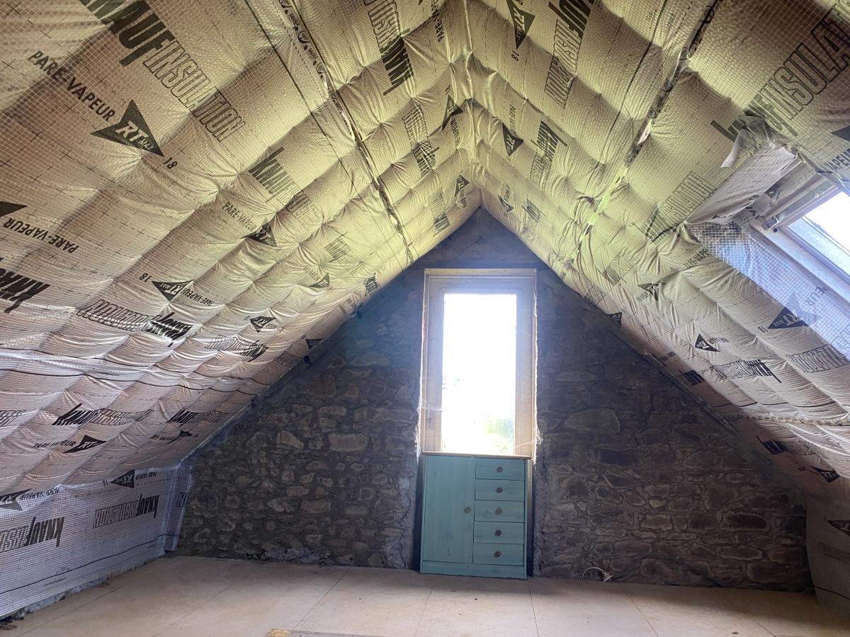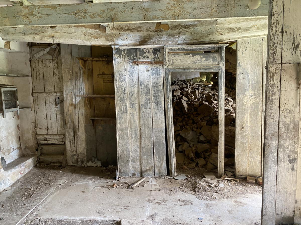 • Au rez-de-chaussée : entrée, ancienne cuisine, chambre, salon avec ancienne cheminée.