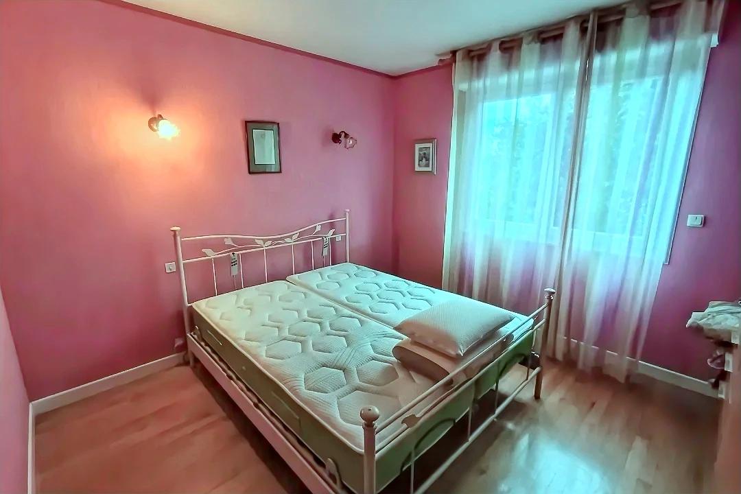 -Au rez-de-chaussée : Entrée avec placard/penderie, WC indépendant, cuisine aménagée et équipée, séjour lumineux avec salle à manger et accès au balcon, deux chambres, une salle d'eau avec douche italienne récente;