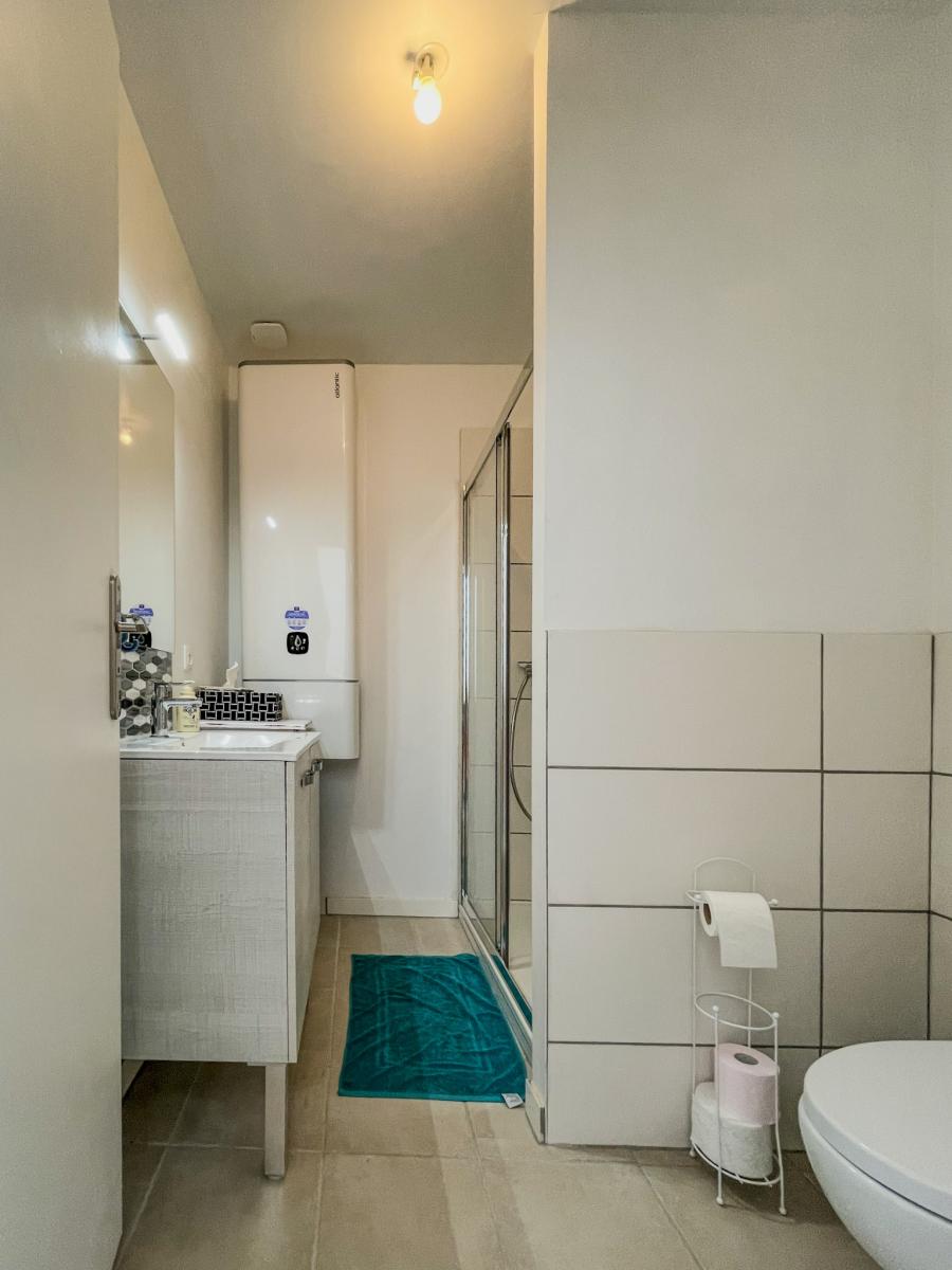 Entrée, cuisine, chambre, salle d'eau avec WC