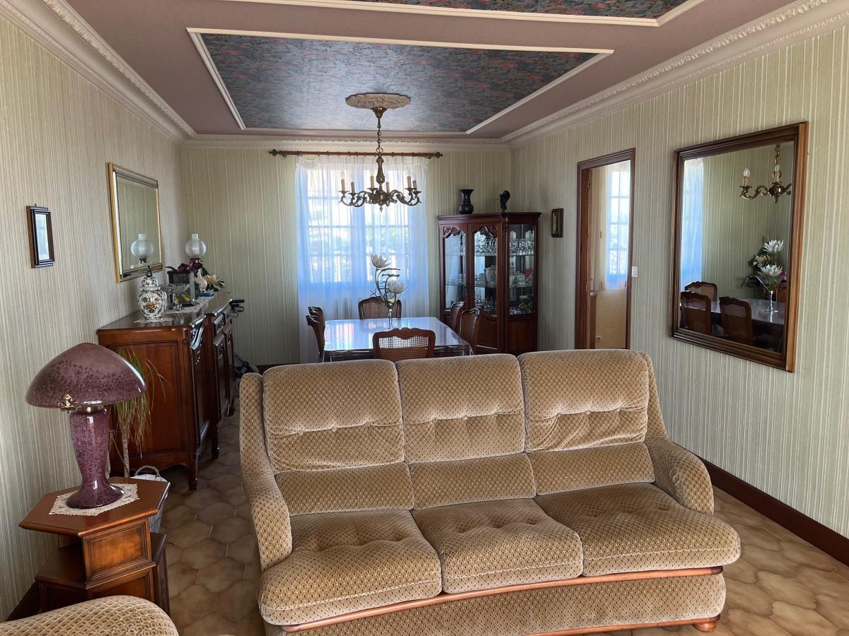 Idéalement située en centre bourg et proche de toutes commodités, maison de 137 m² comprenant hall d'entrée, cuisine, arrière cuisine, séjour/salon, deux chambres , salle de bains avec baignoire et douche, wc. Sous -sol avec garage, chaufferie, débarras, studio avec accès indépendant comprenant cuisine/séjour, une chambre, salle d'eau, wc. Terrain de 600 m².