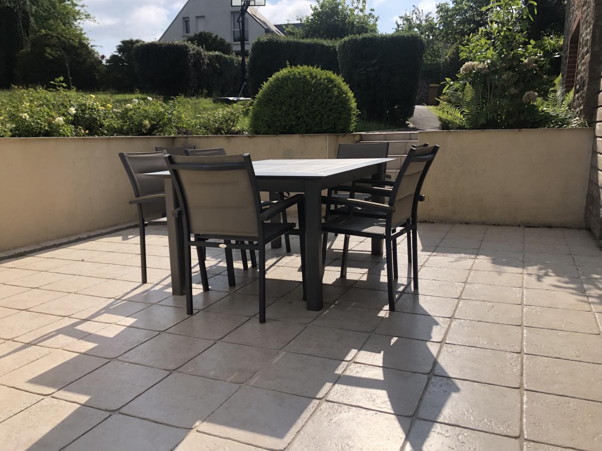 Au rez-de-chaussée : entrée, salle à manger, salon avec cheminée, salon, cuisine et coin repas, WC, terrasse