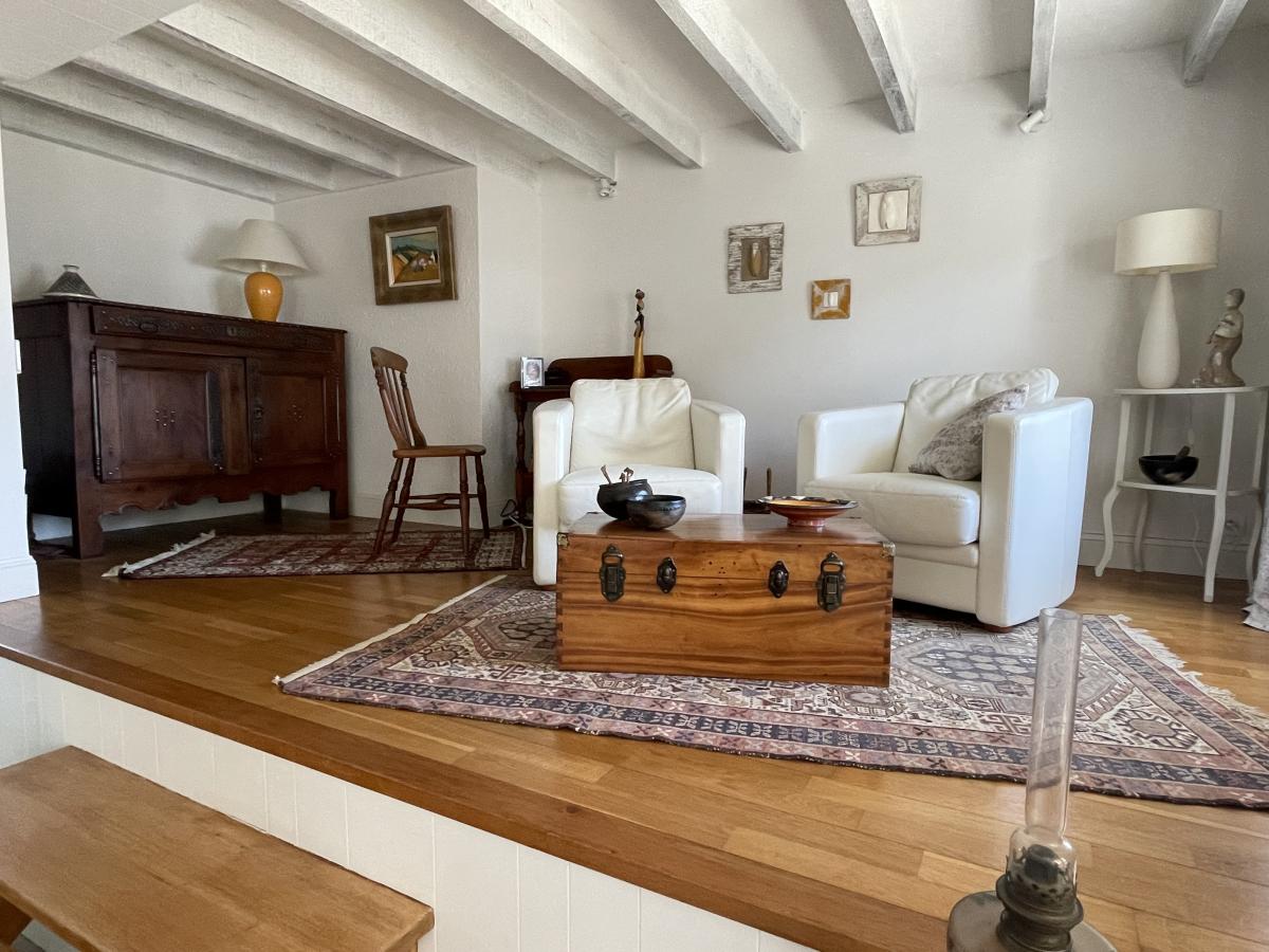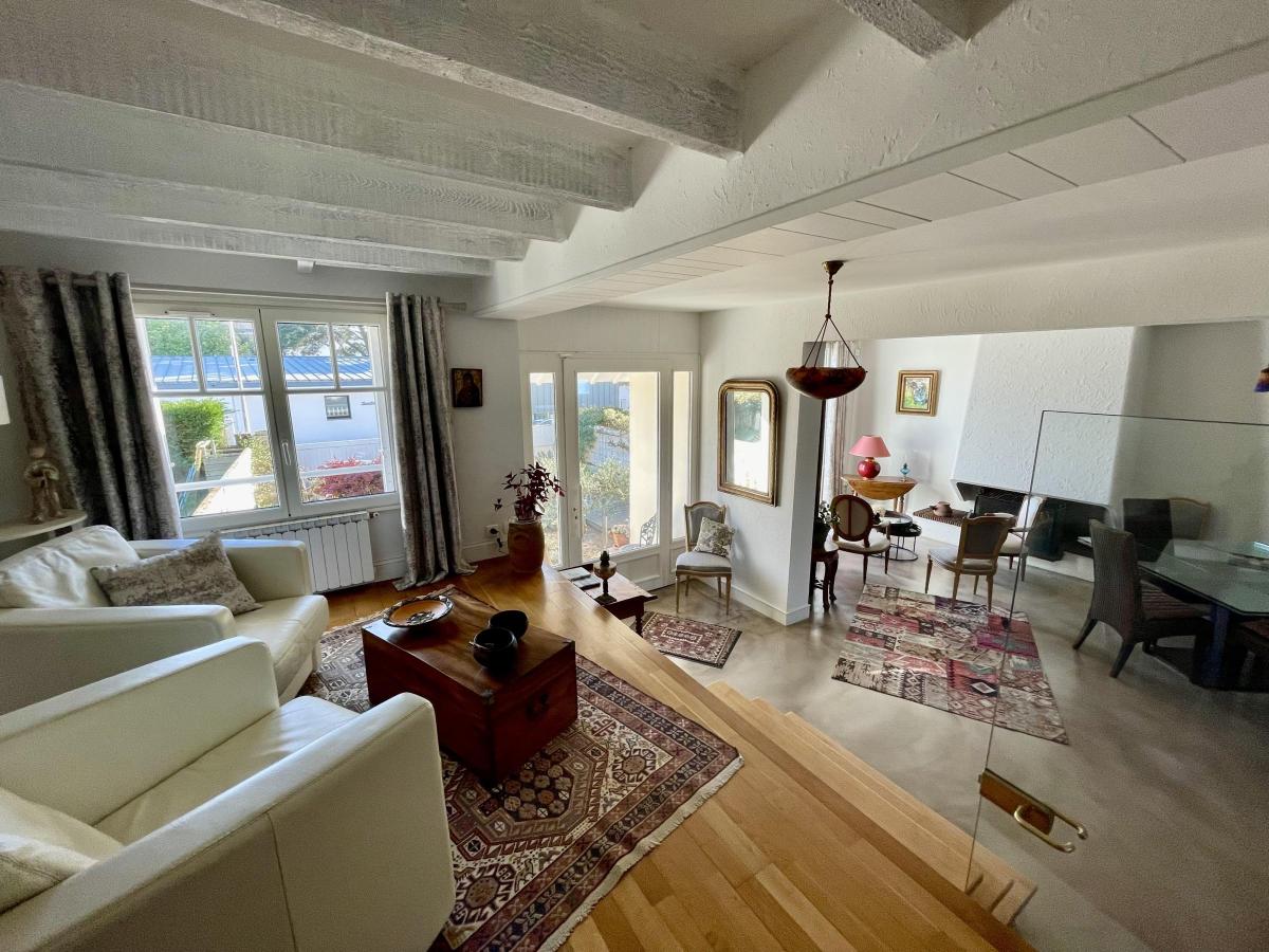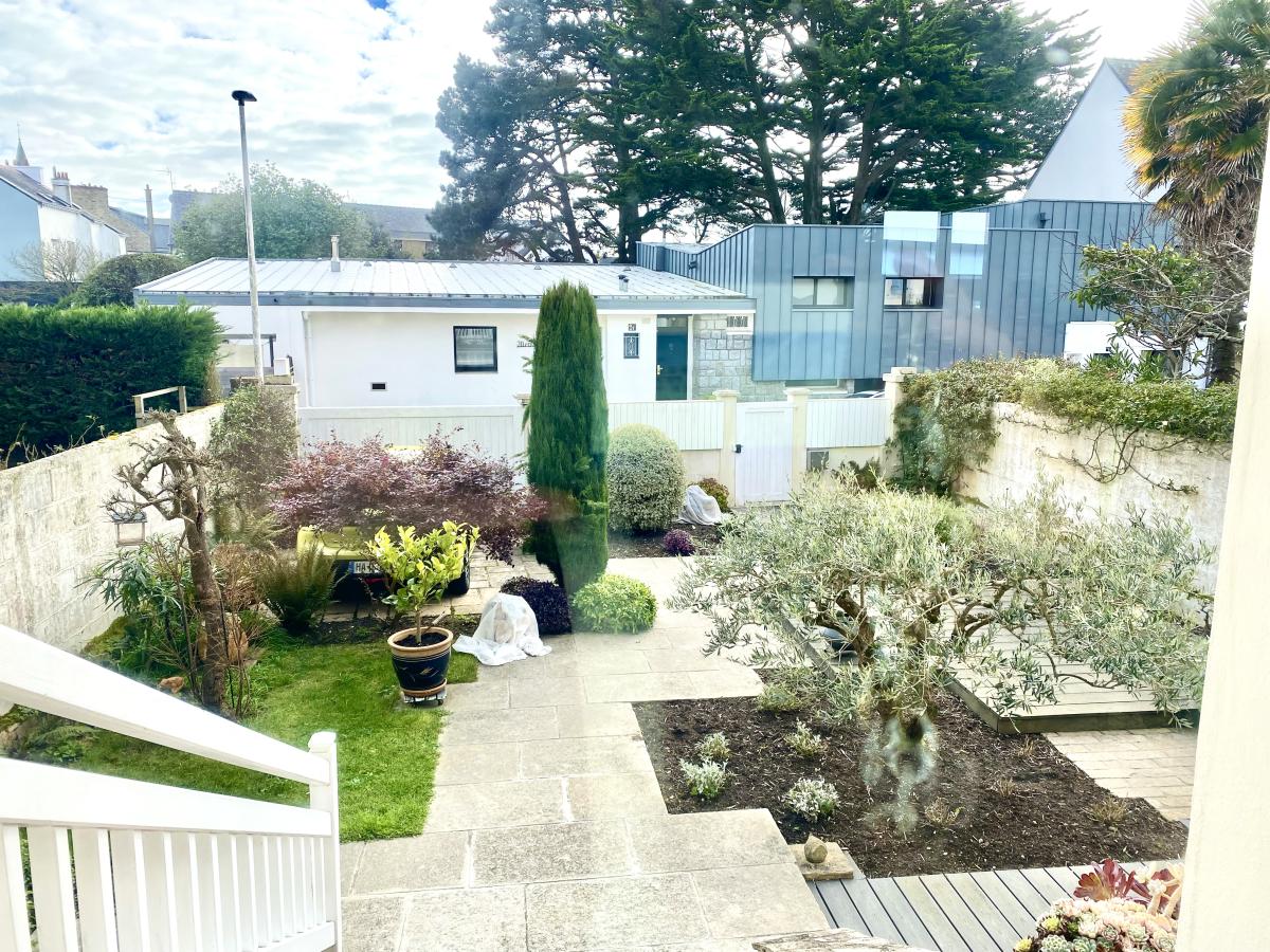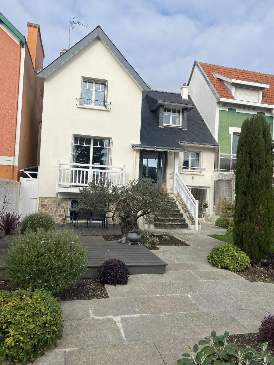 Maison des années 30 dans une impasse à Larmor plage à 100 m de l église et de la plage de Toulhars , comprenant 1 studio, une belle pièce à vivre, cuisine séparée, 3 chambres à l étage terrain de 246 m² exposé sud ouest
