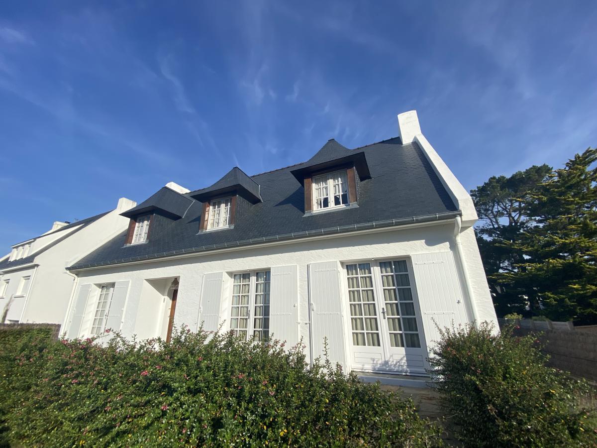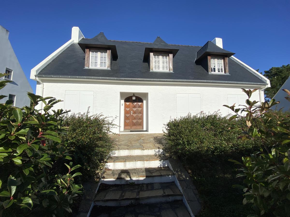RARE À LA VENTE. PEN BRON Venez découvrir cette maison familiale nichée au cœur d'un cadre exceptionnel entre marais, plage et forêt de pins ! Au rez-de-chaussée le grand hall d'entrée dessert un salon-séjour traversant de plus de 43m², une cuisine-salle à manger de 20m² et un WC. A l'étage vous trouverez trois belles chambres, un bureau, une salle de bains et un WC. Un sous-sol semi-enterré d'environ 50m² propose un espace garage, cellier et stockage. Jardin exposé nord-ouest entièrement clos avec puits. Quelques travaux sont à prévoir. DPE : E