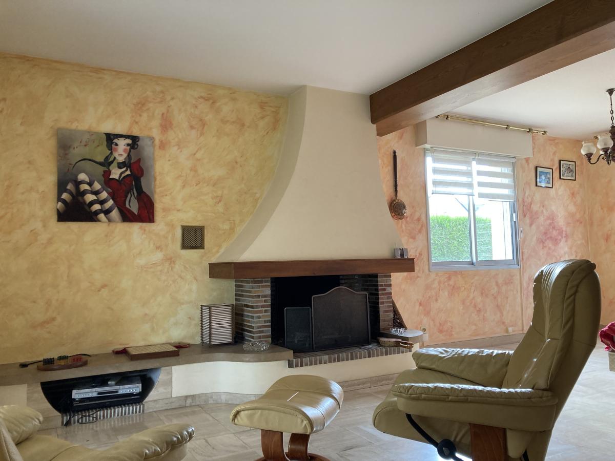 Une maison comprenant au rez-de-chaussée, une entrée, une cuisine aménagée et équipée, un salon-séjour avec cheminée, une véranda et des toilettes.