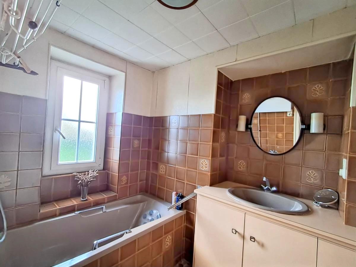 De plain-pied, elle se compose d’une cuisine non aménagée, d’une arrière-cuisine, d’une salle de bains, d’un dégagement, de deux chambres, d’une salle à manger, d’une cave, ainsi qu’une pièce équipée d’un ancien fournil.