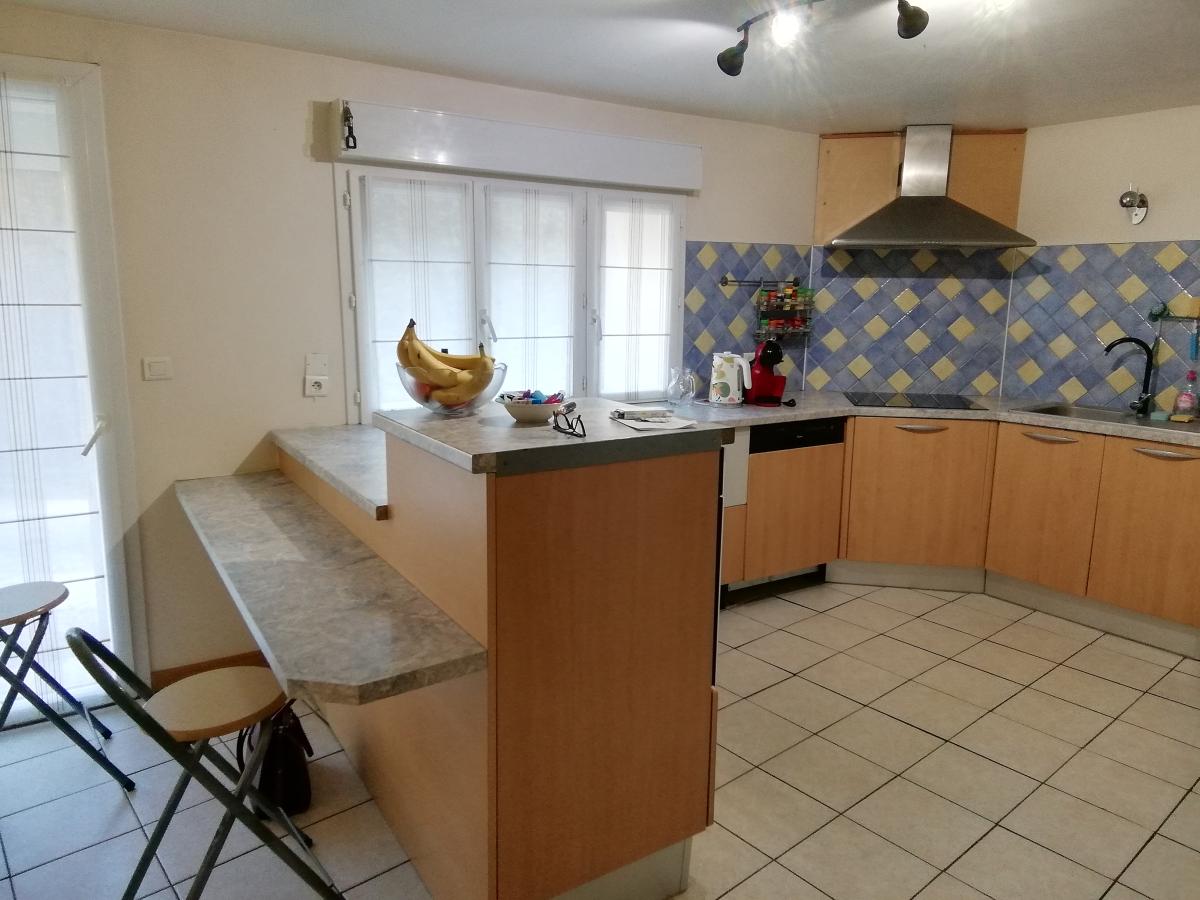 Rez-de-chaussée : entrée, salon/séjour, cuisine équipée, buanderie, wc. Garage/atelier.