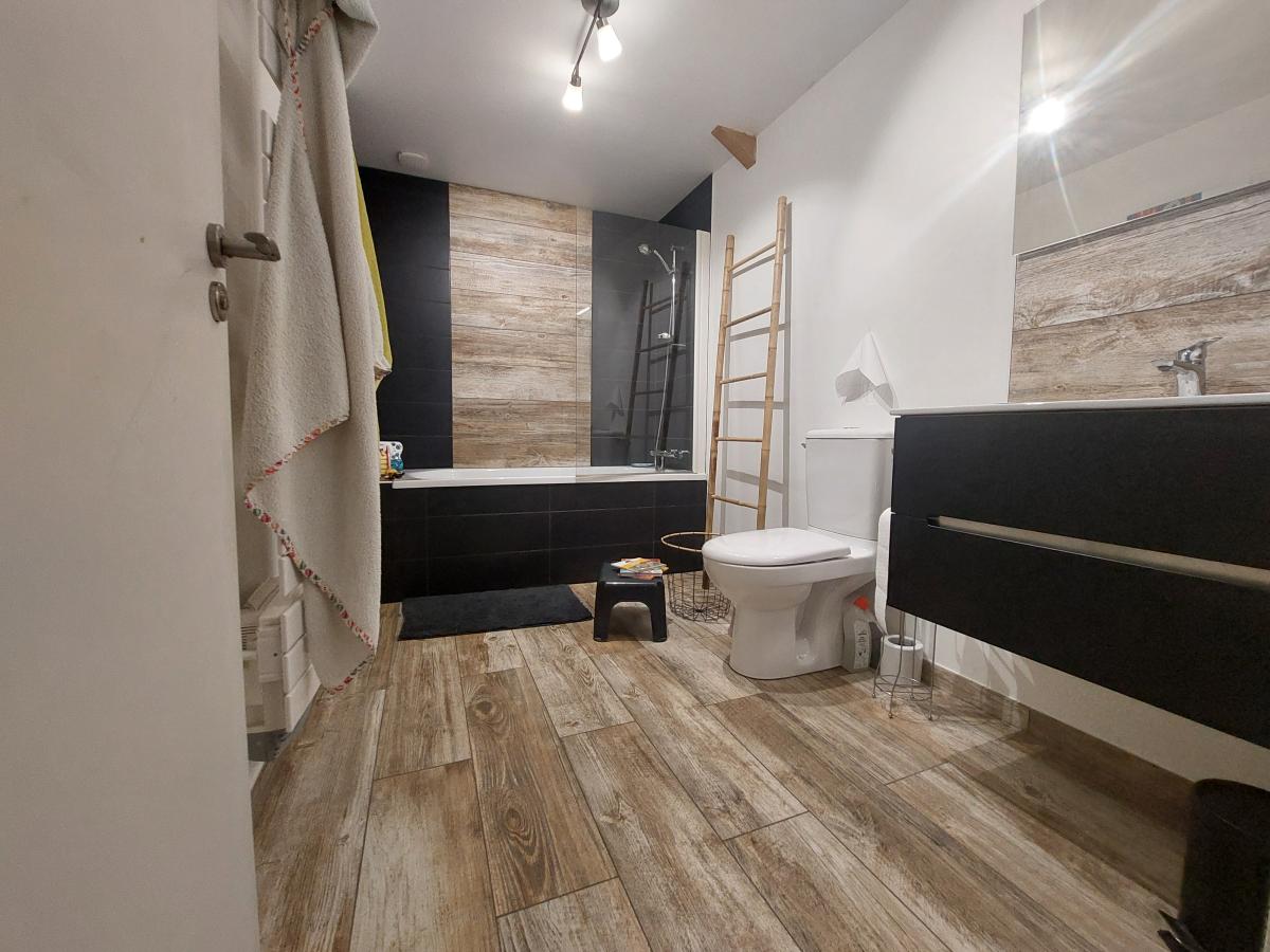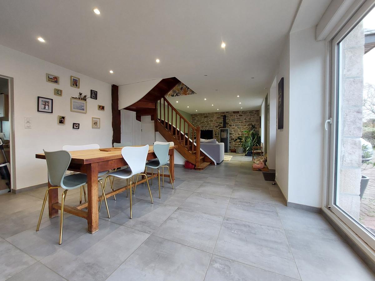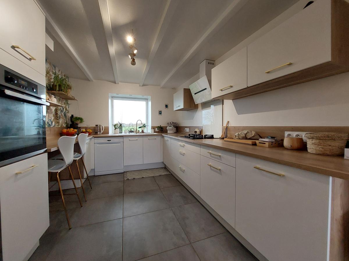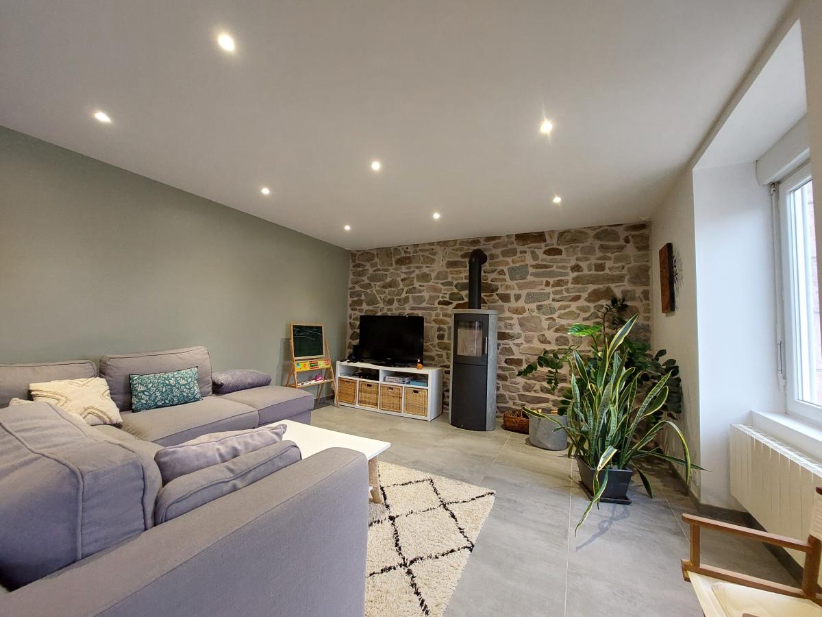 - Au rez-de-chaussée: cuisine aménagée, salon/séjour avec poêle à bois, chambre, buanderie, pièce débarras, salle d'eau wc.