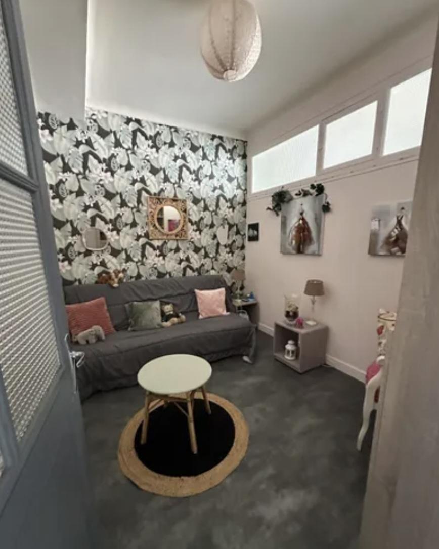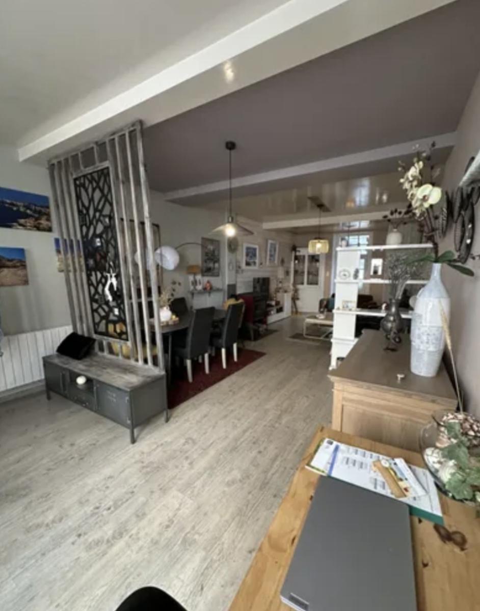 - Au rez-de-chaussée : une vaste pièce de vie (40 m²), salon, grande cuisine aménagée et équipée avec un accès au jardin.