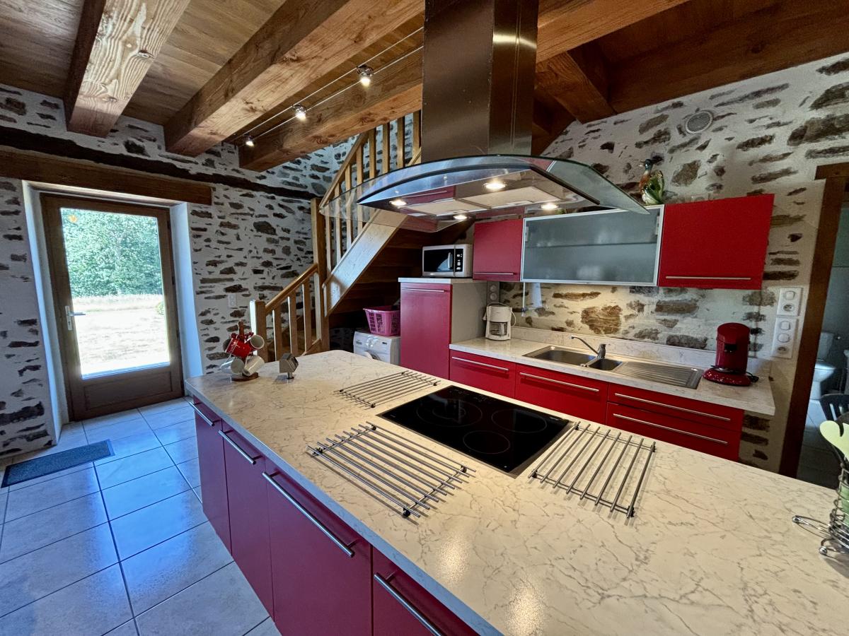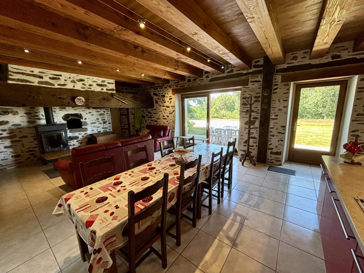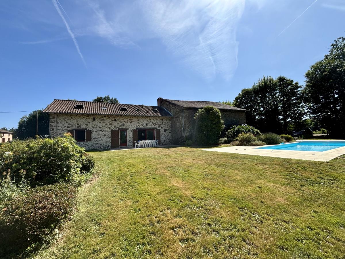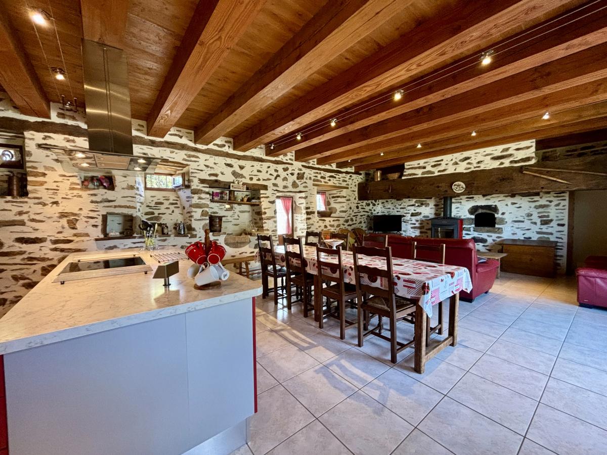 Très belle rénovation pour cette ferme comprenant une pièce de vie de 55 m² avec cuisine aménagée, cheminée et terrasse donnant sur piscine, 5 chambres, trois bains. Grange attenante de 125 m². Piscine chauffée 9X5. Parc clos. 1 km des commerces.