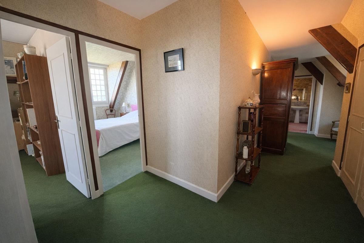-Au premier étage : dégagement avec placard, sanitaires, bureau, salle de bains, trois chambres dont une avec rangement et une avec salle de douches.