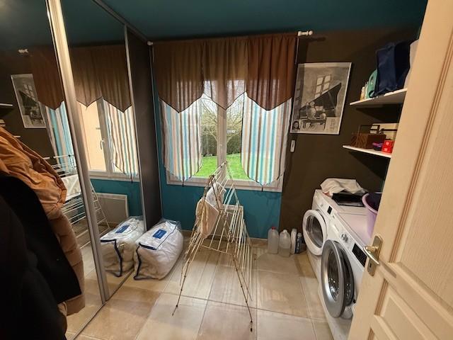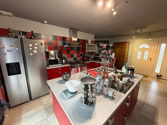 Entrée, cuisine aménagée et équipée ouverte sur salle-salon avec cheminée centrale double foyer, chauffage au sol pour partie et radiateurs électriques pour autre partie, wc indépendant, salle de bains avec baignoire et douche, buanderie dressing, 3 chambres.