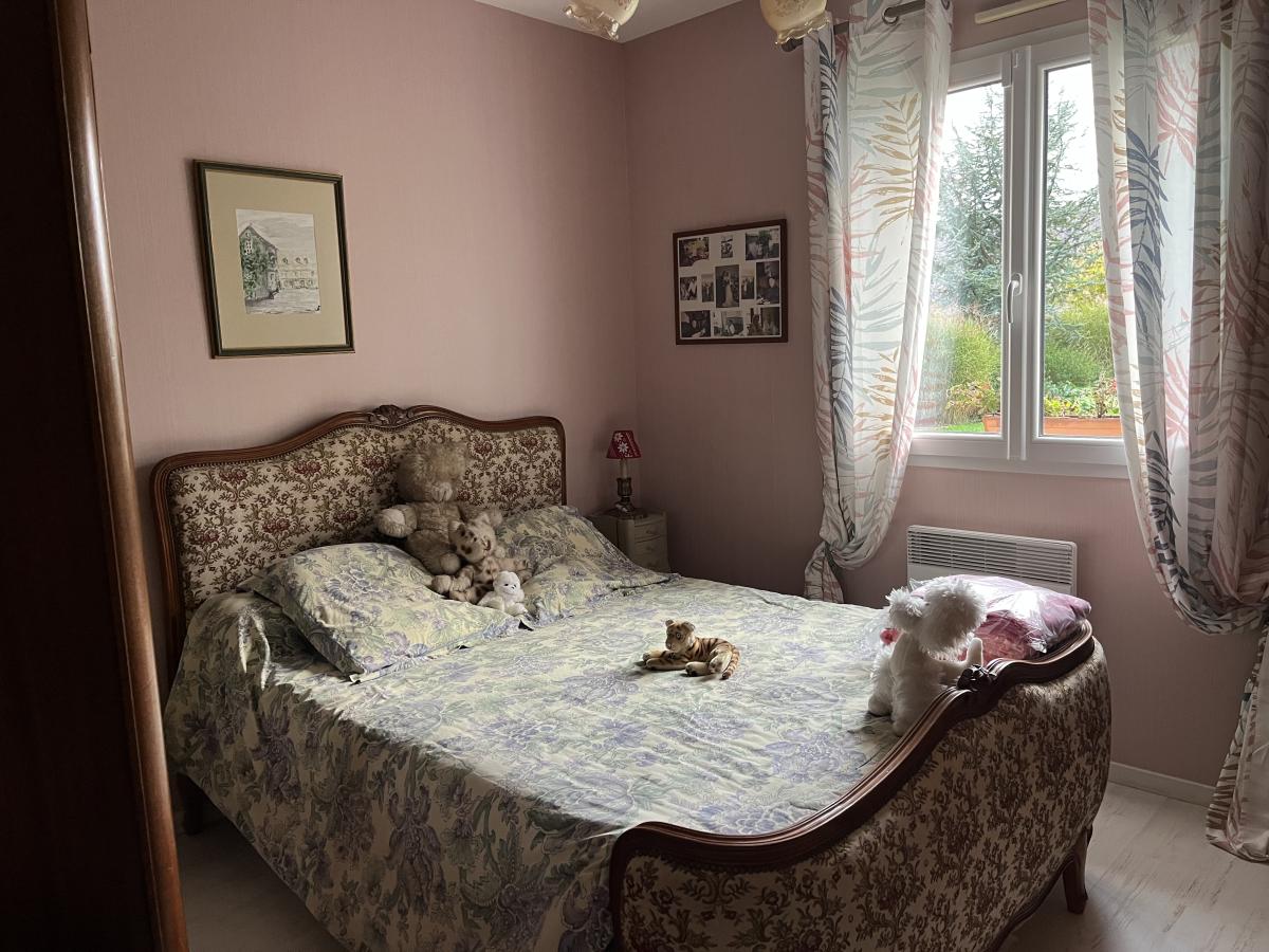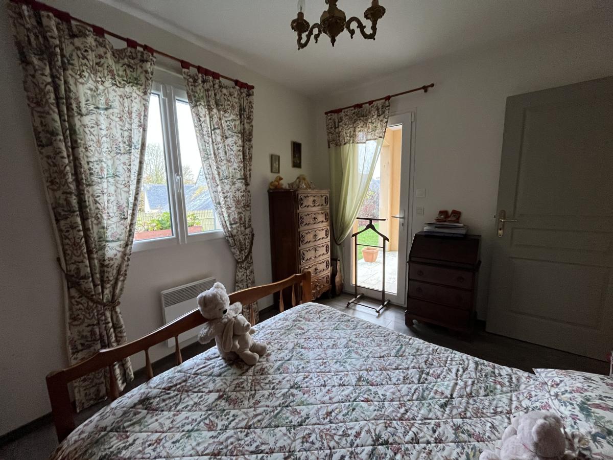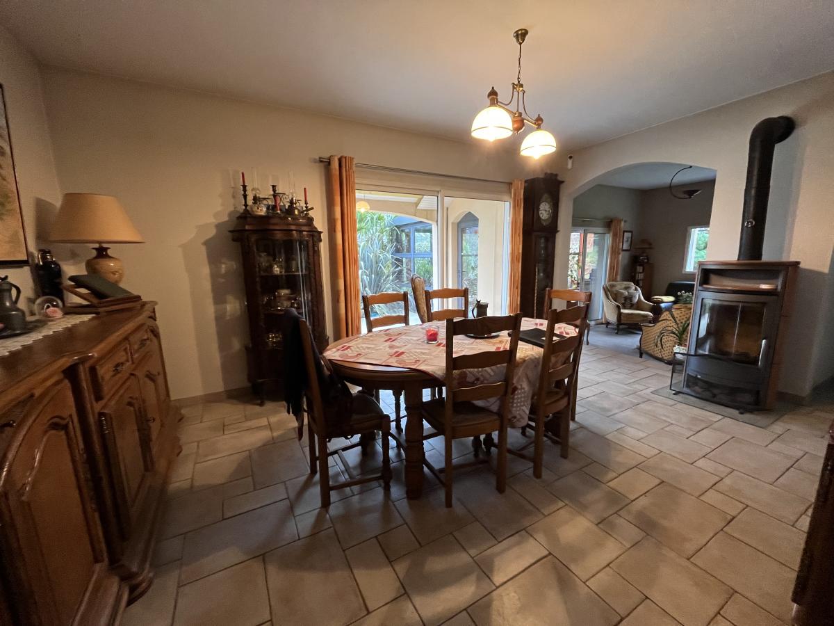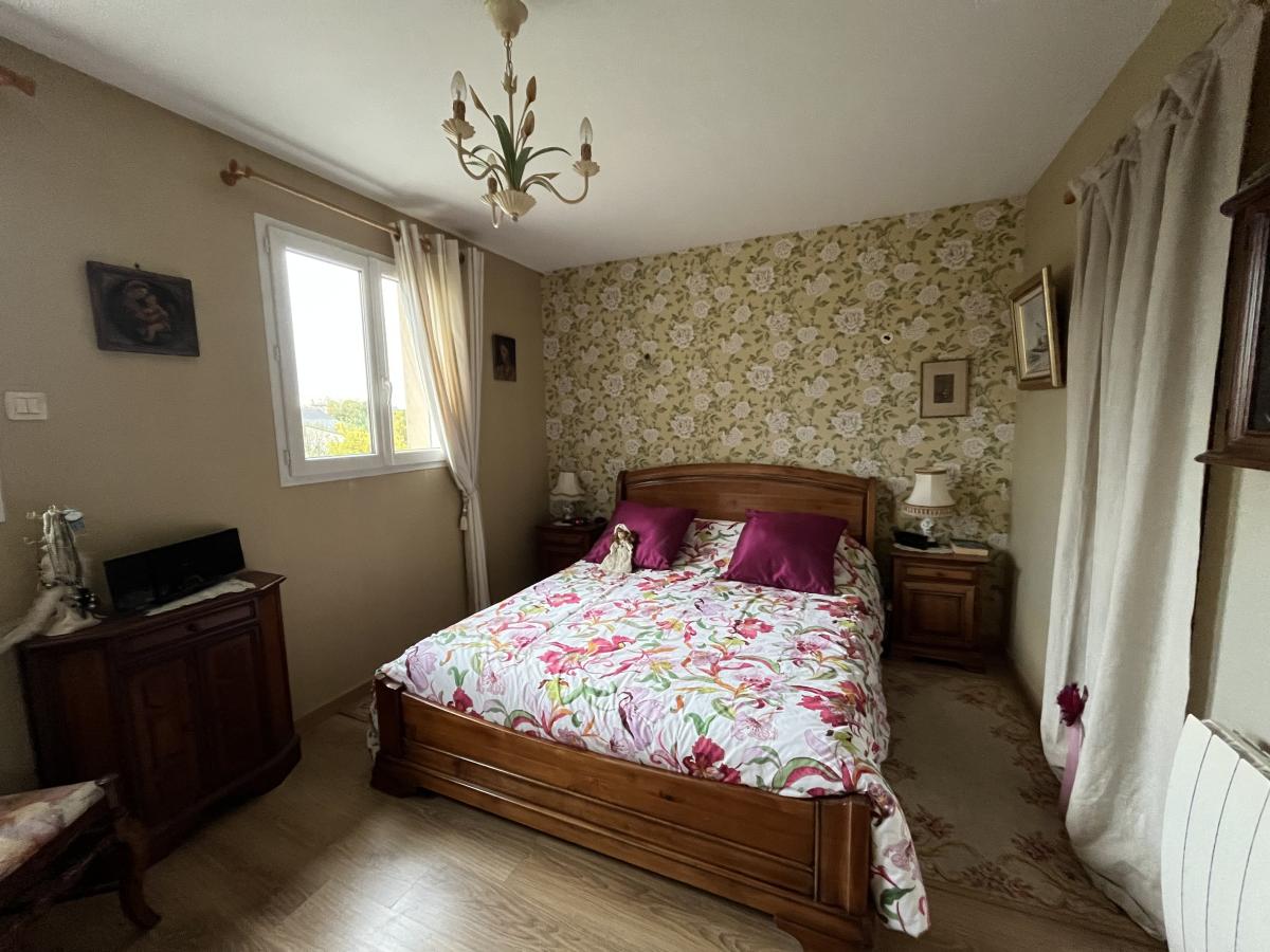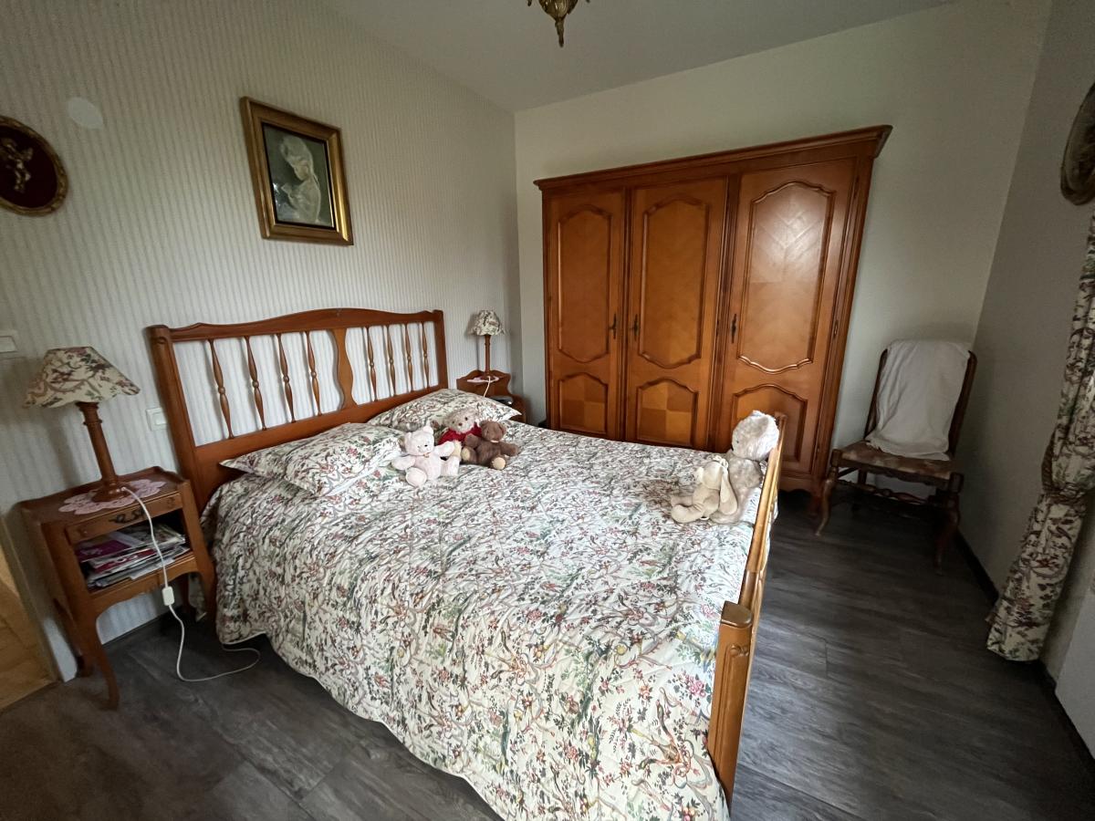 RDC : entrée avec placard, wc avec lave-mains, trois chambres, salle de bains + douche, trois chambres, séjour-salon avec poêle à bois-pièce vitrée, cuisine aménagée et équipée semie-ouverte, arrière cuisine,( deux greniers)