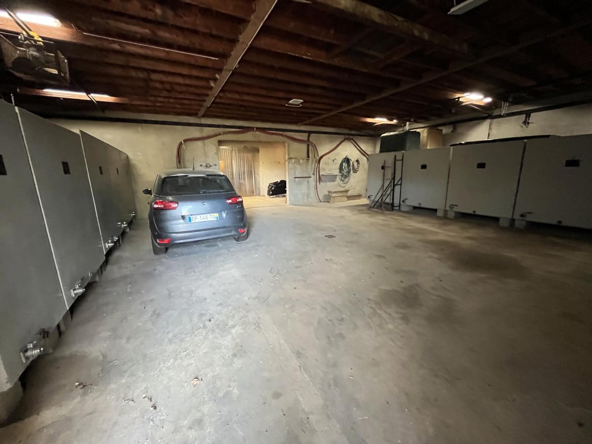 -Deux caves à fûts d’environ 40 m² et 60 m² avec sol béton et gravier, plafond isolé, et hauteur sous plafond de 2.10 m.