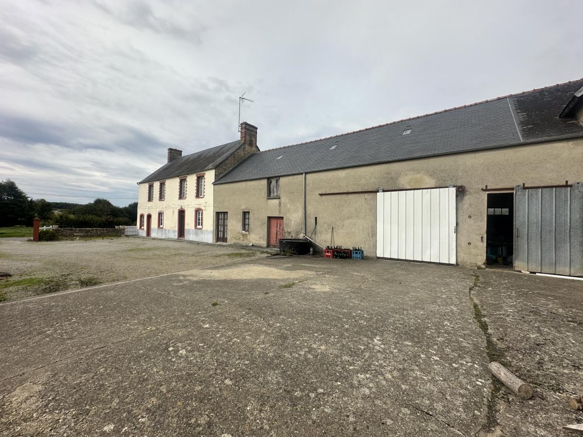 Grande cour devant - Terrain autour. Exposition SUD en façade.
