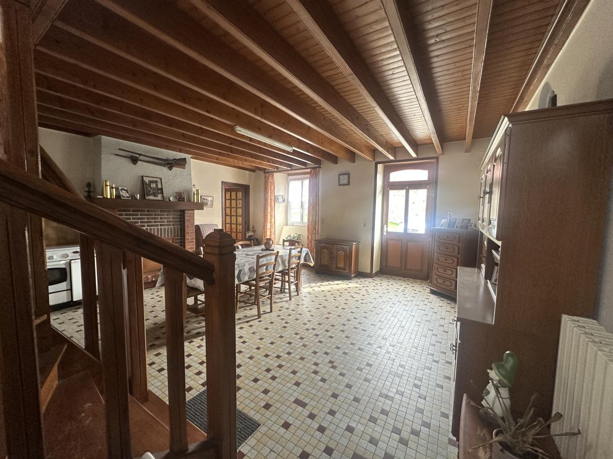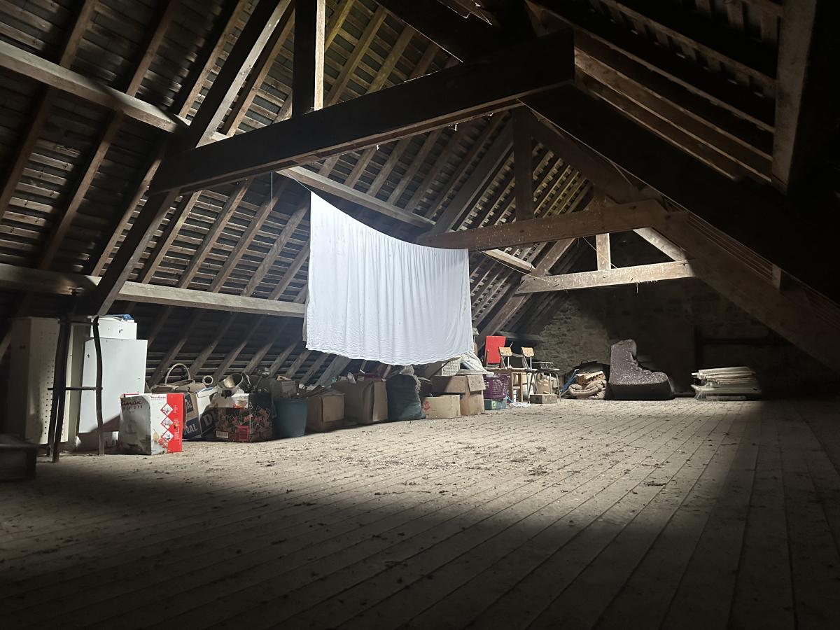 Au-dessus : Grenier sur toute la surface - charpente traditionnelle.