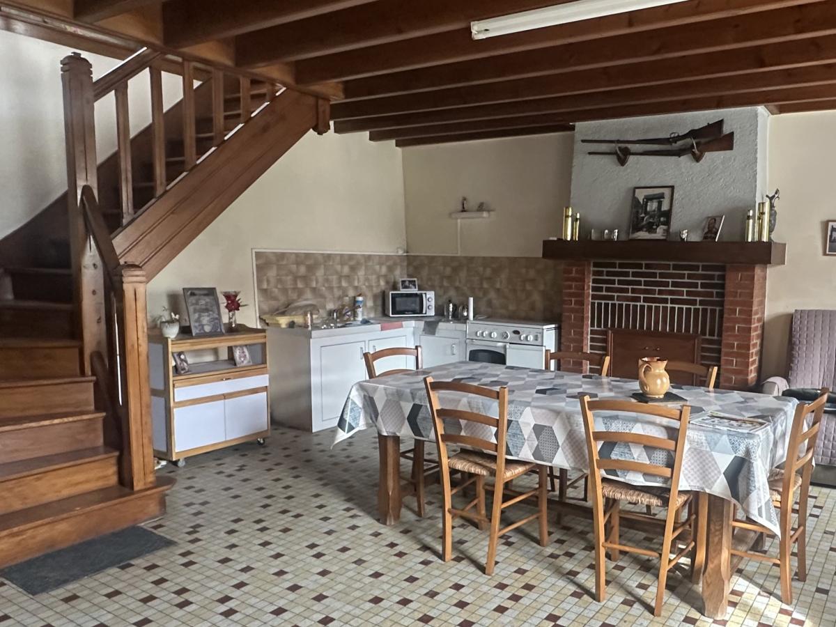 Au rez-de-chaussée : Une belle cuisine/salle à manger de 32m² avec cheminée ouverte, un salon/séjour de 26m², une grande salle d'eau de 12m², une arrière cuisine.