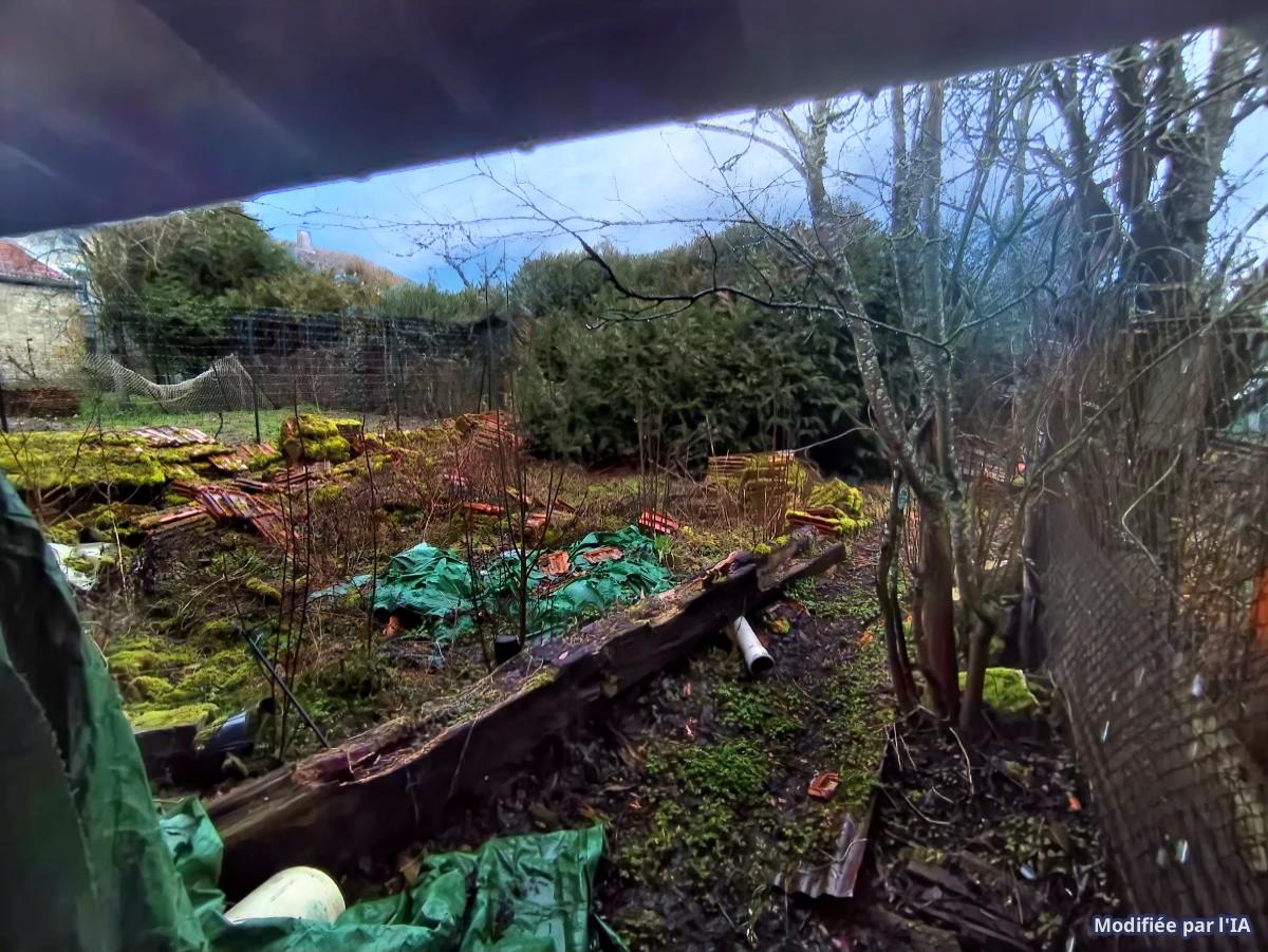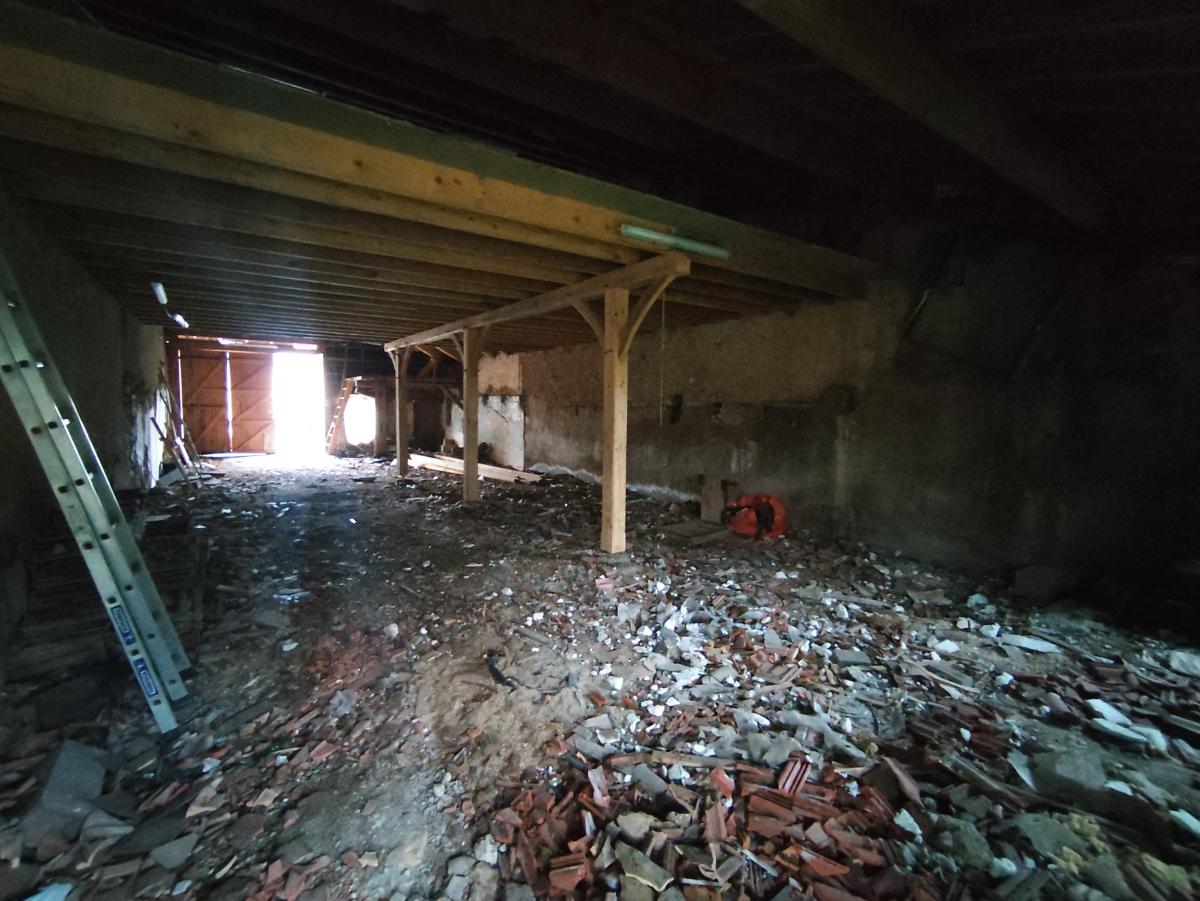 Grange avec petit jardinet derrière.