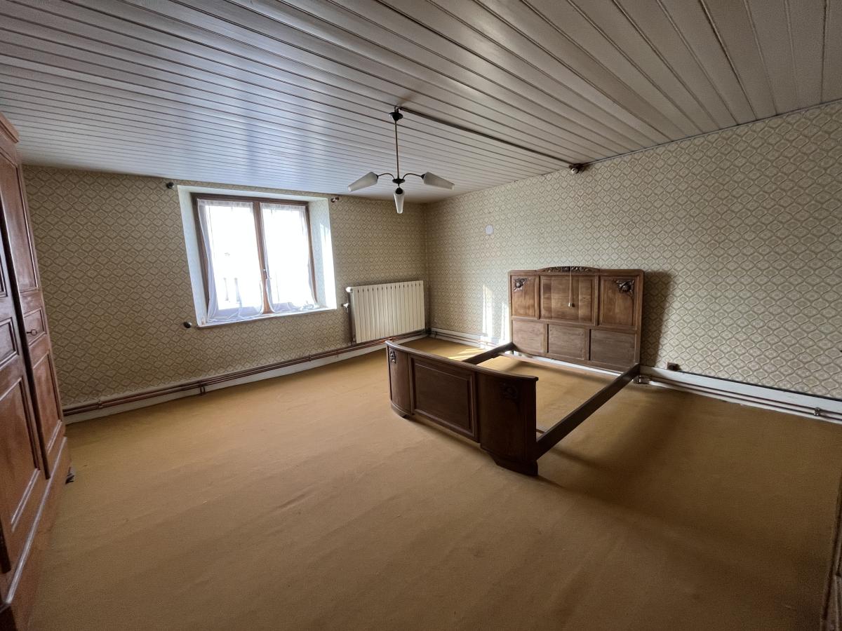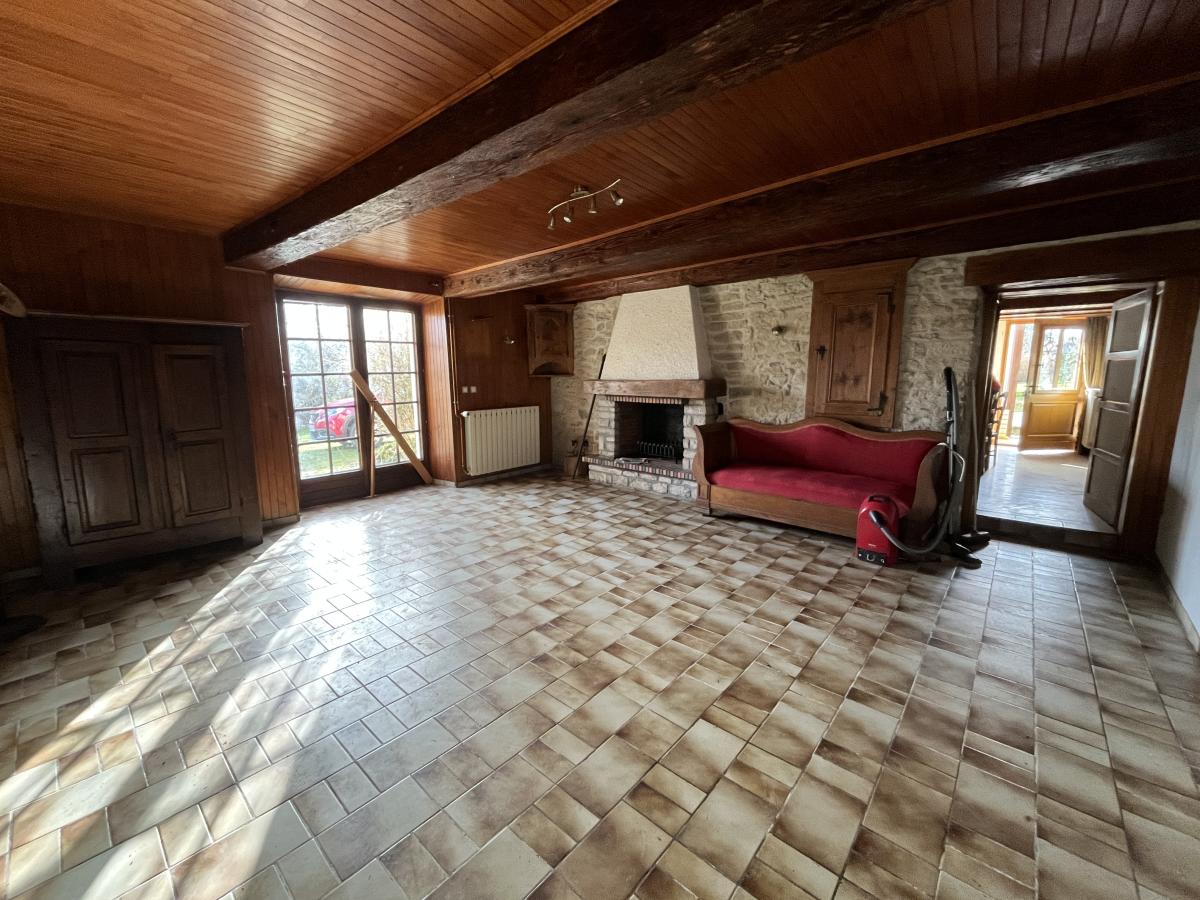 Une maison à rénover comprenant cuisine, salle d'eau avec WC, séjour salon, salle à manger, trois chambres.