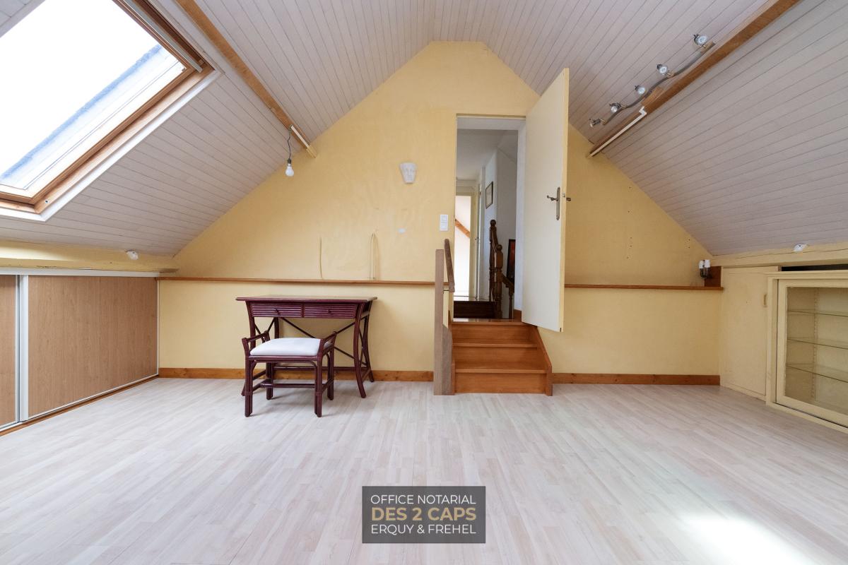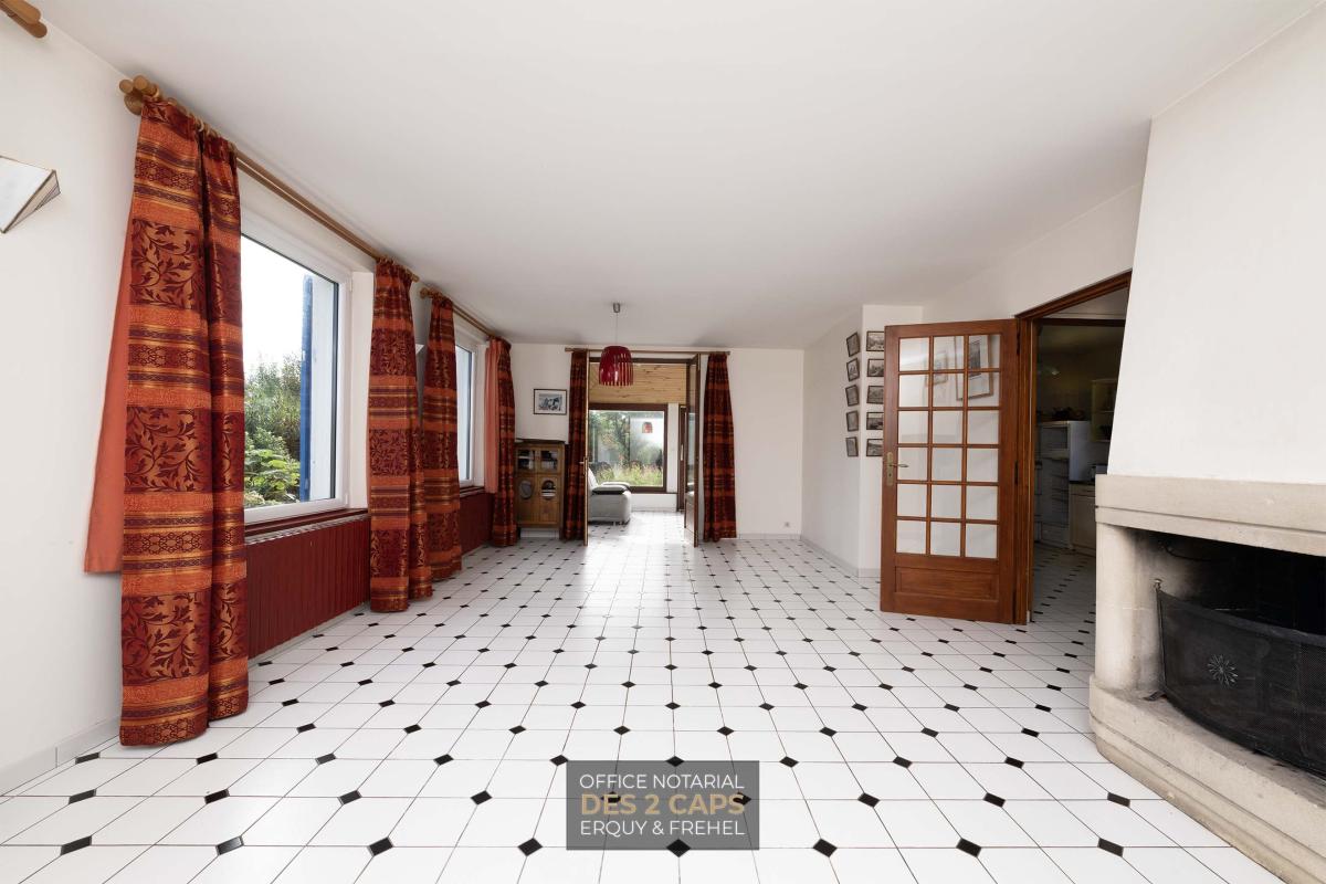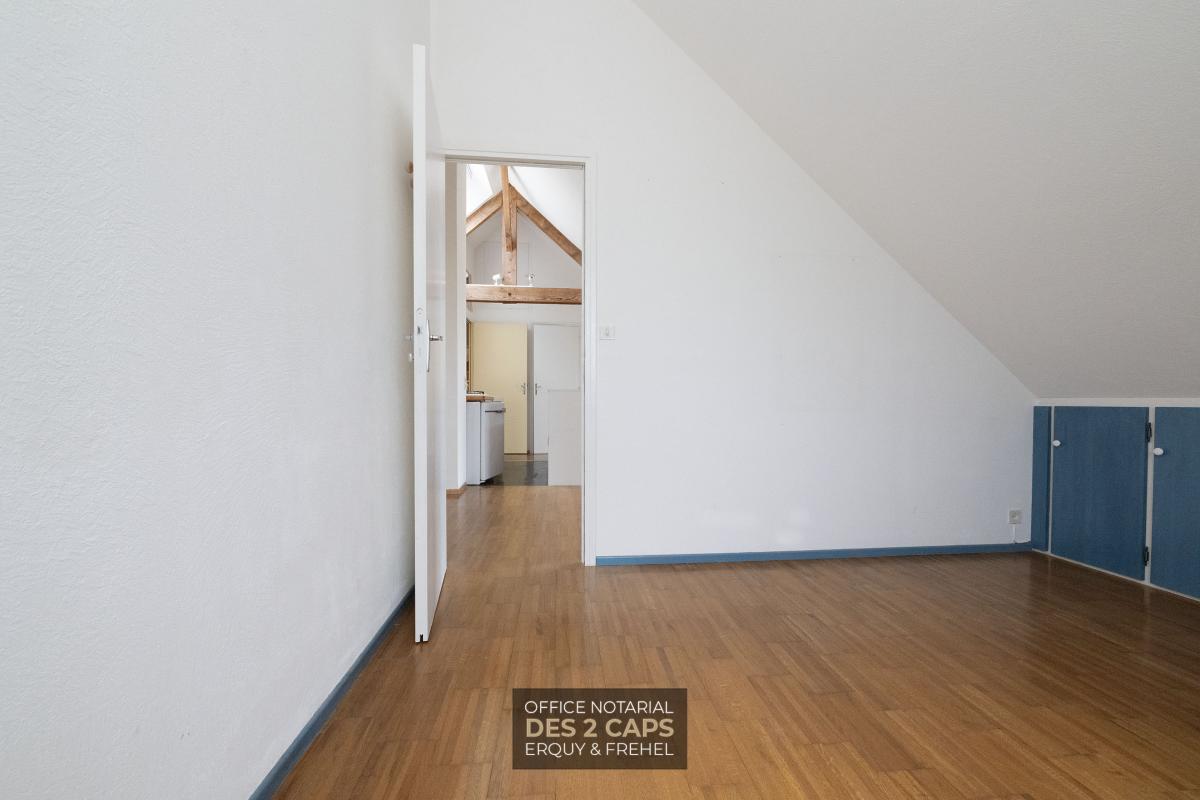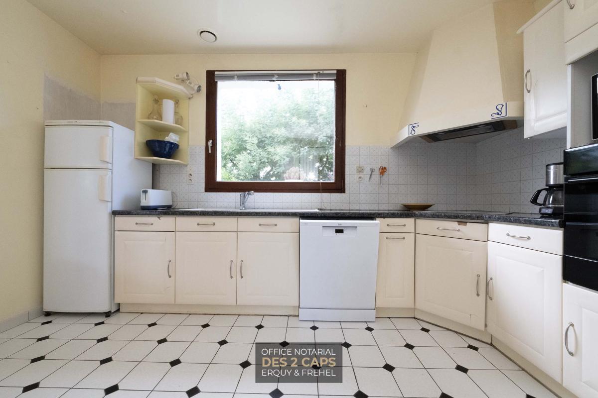 Maison, centre d'Erquy composée au rez-de-chaussée d'une entrée desservant un salon/séjour, une cuisine, une véranda, une chambre, une salle de bains, des W.C, un double garage attenant avec coin chaufferie, atelier, buanderie, une cave et un appentis. A l'étage, une suite parentale composée d'un espace bureau/salon, chambre et salle d'eau. Un appartement avec une pièce de vie/kitchenette, deux chambres, une salle de douches, un dressing, une chambre et des W.C. Un jardin clos arboré.