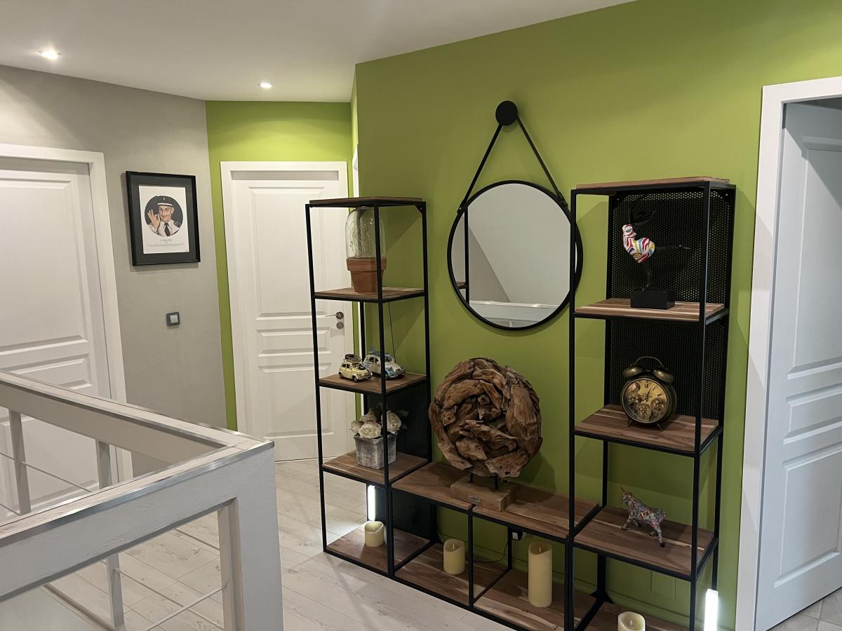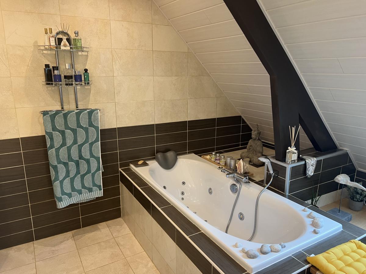 - A l'étage : palier, wc indépendant, salle de bains avec baignoire balnéo, douche italienne, lingerie, trois chambres.