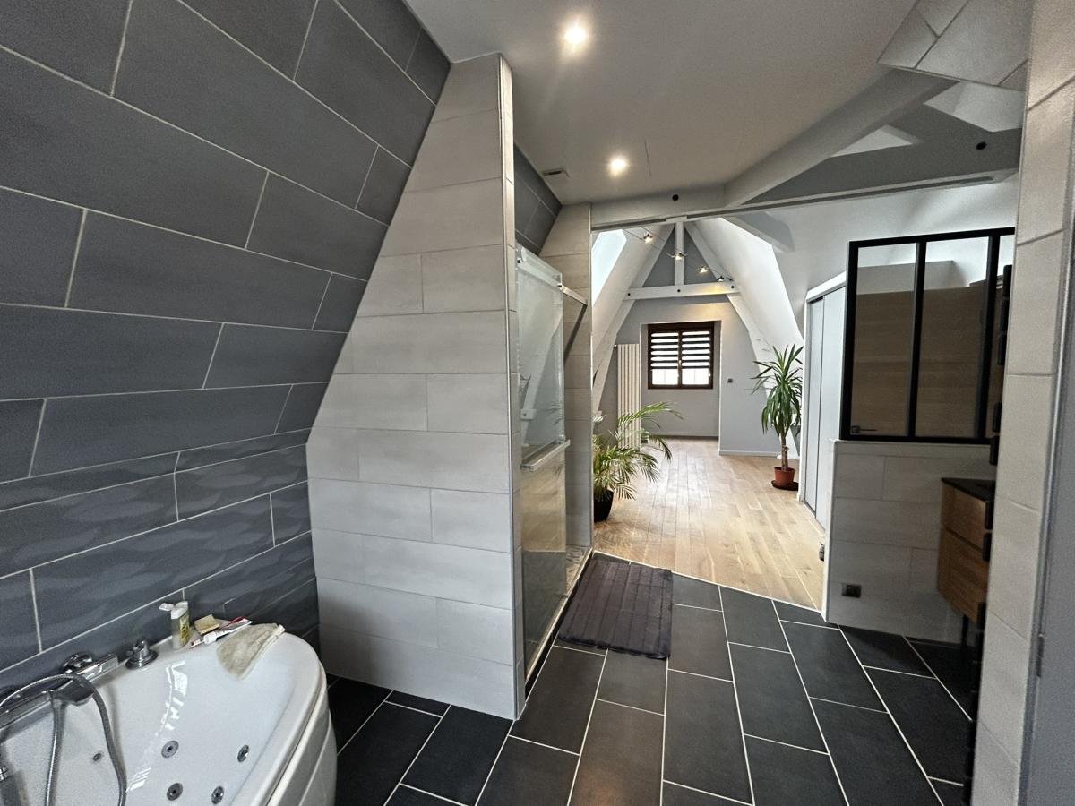 À l’étage, un palier dessert trois chambres, dont une superbe suite parentale avec douche et baignoire, ainsi qu’une seconde salle d’eau pour le confort des deux autres chambres.