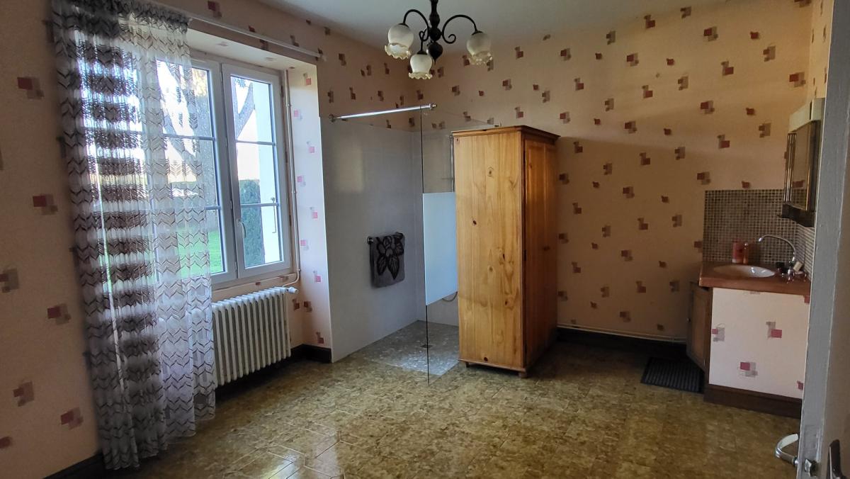 MELLERAN, Maison ancienne avec beaucoup de cachet comprenant: au rdc: une entrée, une cuisine, une salle à manger, une chambre, un dégagement, un wc, une chaufferie, une deuxième salle à manger, une ancienne cuisine, une pièce, une cave. A l'étage: une salle de bains, deux chambres, un dégagement, un grenier. Le tout sur un terrain de 6335 m² avec un préau/terrasse, un garage, une écurie/garage, des petits toits, un deuxième garage et deux granges. Prévoir travaux d'assainissement et d'électricité.