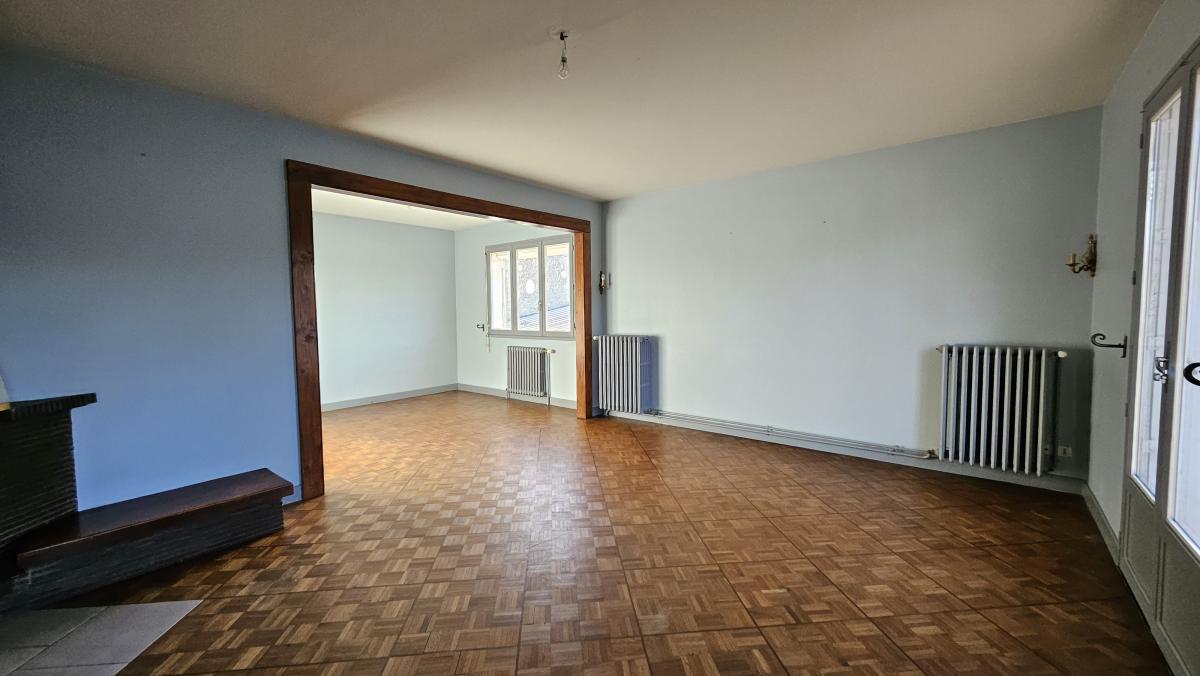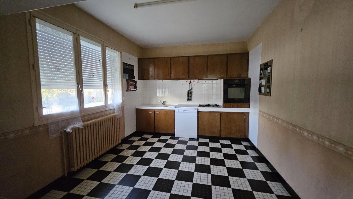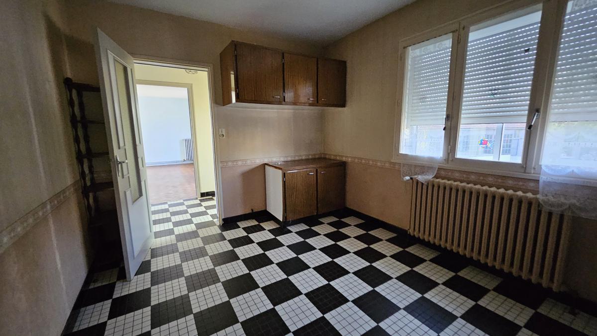 Entrée avec placards et dégagement, salon - salle à manger avec cheminée insert, cuisine, deux chambres, salle d'eau, WC ;