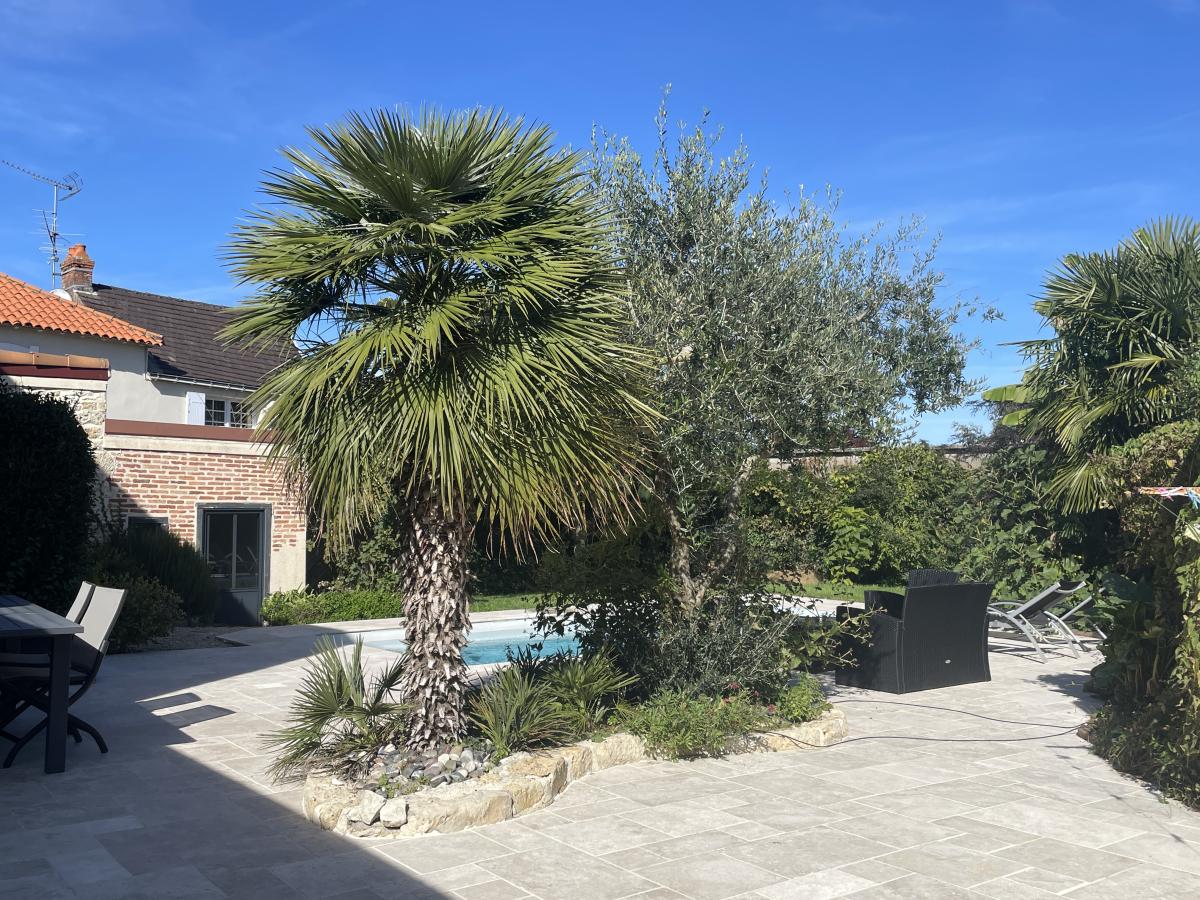 Jardin sur l'arrière, paysagé, avec grande terrasse et piscine, le tout entièrement clos de murs.
