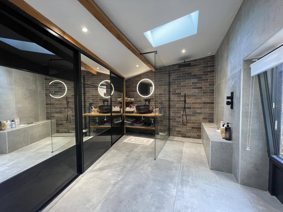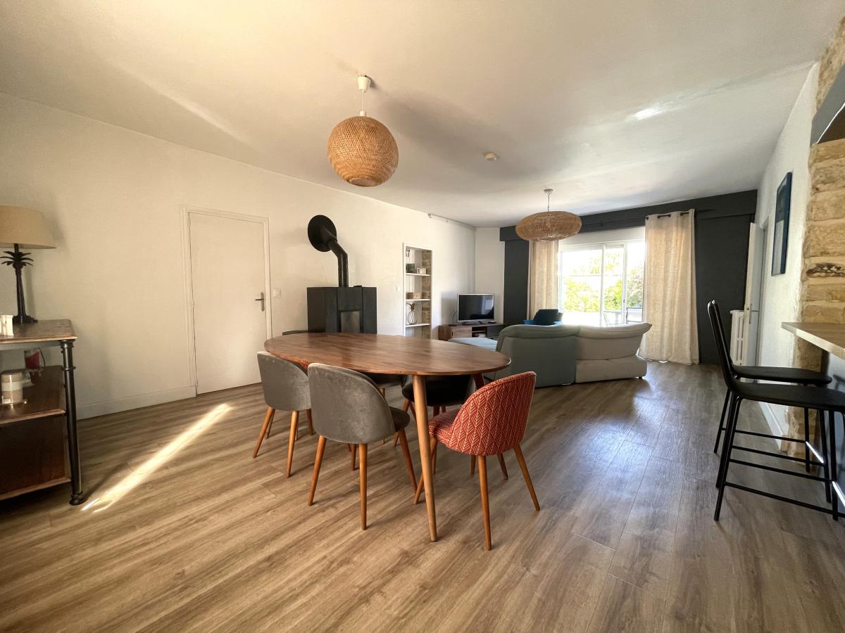 Cette maison est en excellent état d'entretien intérieur comme extérieur. Elle comprend aujourd'hui au rez-de-chaussée : hall d'entrée, w.c. sous escalier, bureau, séjour/salon avec poêle mixte (granules et bois) ouvert sur cuisine aménagée/équipée, suite parentale avec chambre et salle d'eau/dressing privative.