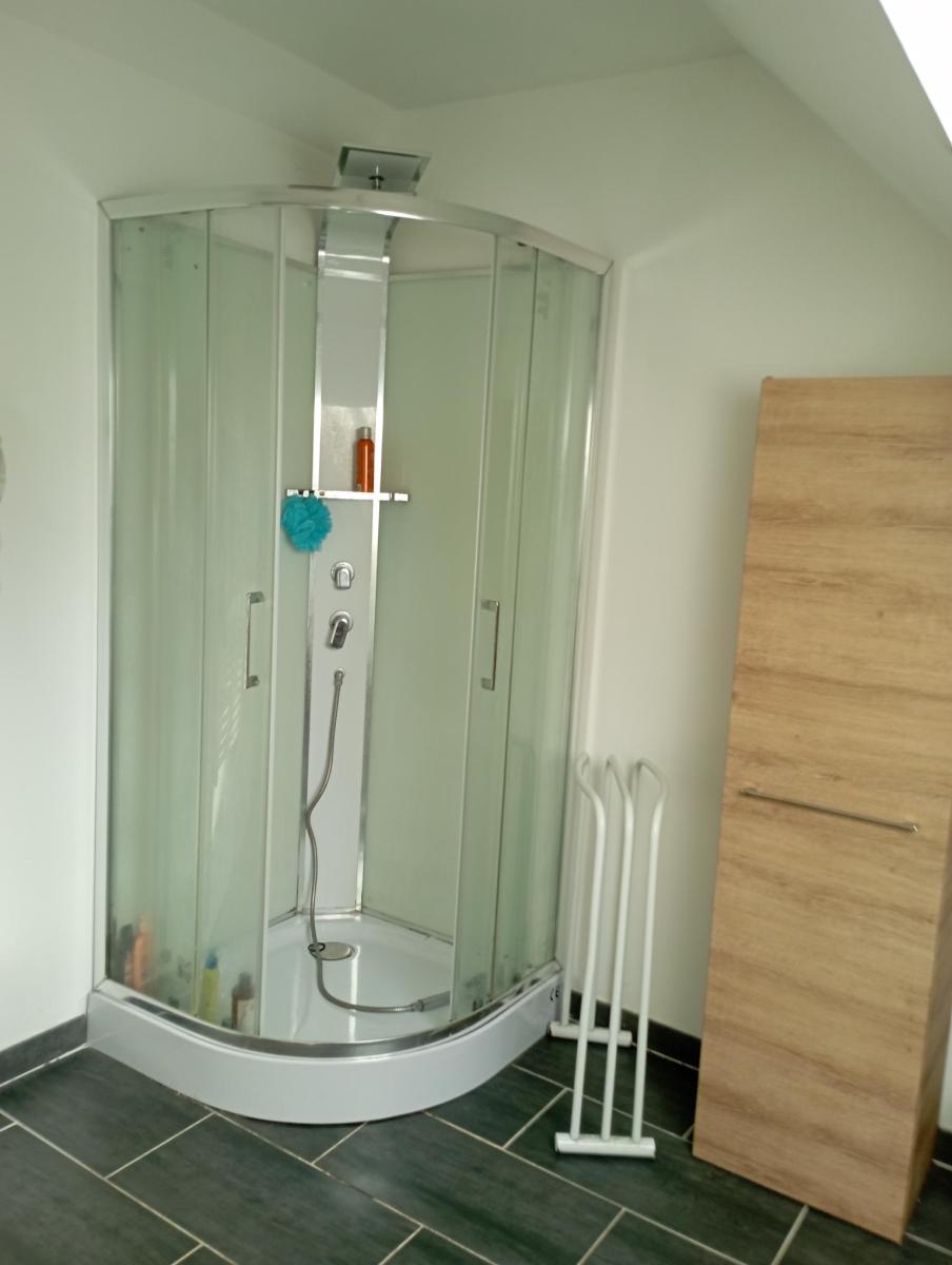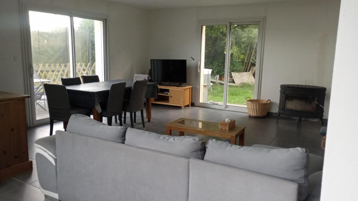Au rez-de-chaussée : Entrée avec placard, cuisine aménagée et équipée avec poêle à pellets, une pièce avec cheminée, salle à manger-salon avec poêle à bois, salle d'eau, wc buanderie.
