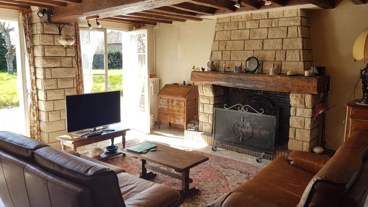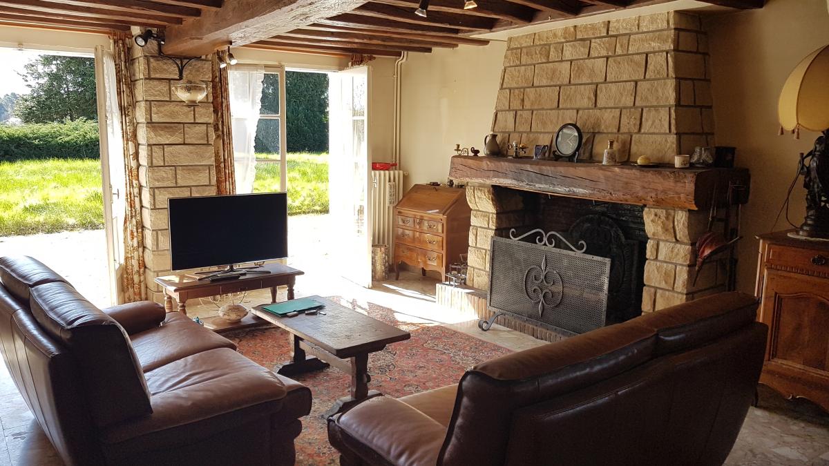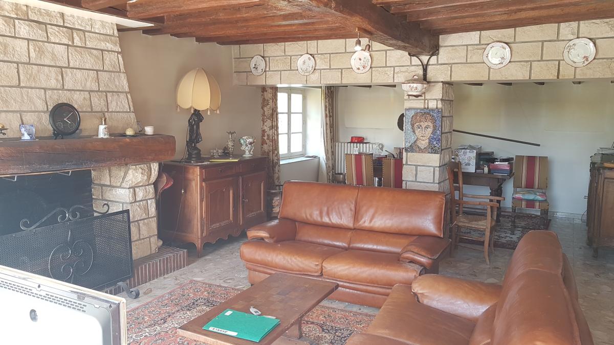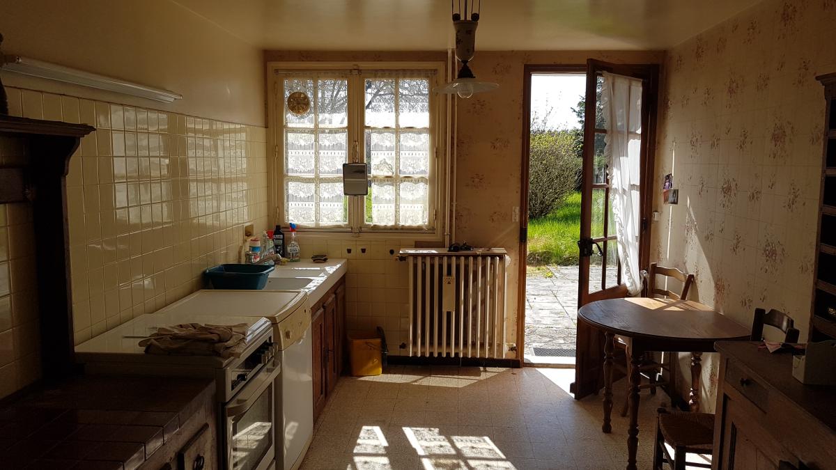 - au rez-de-chaussée de chaussée : entrée, cuisine, dégagement, séjour avec cheminée ouverte, salle de bains, WC, deux chambres,