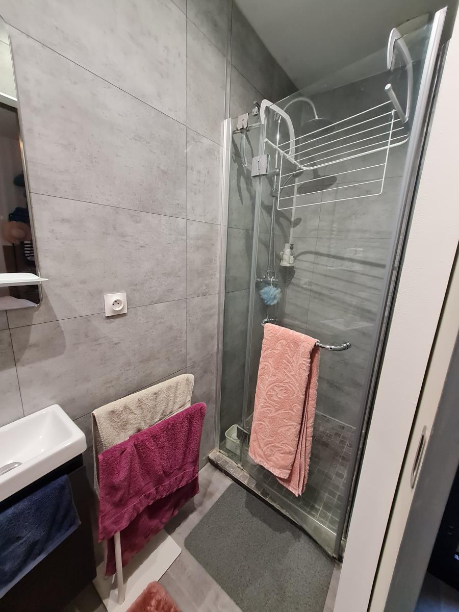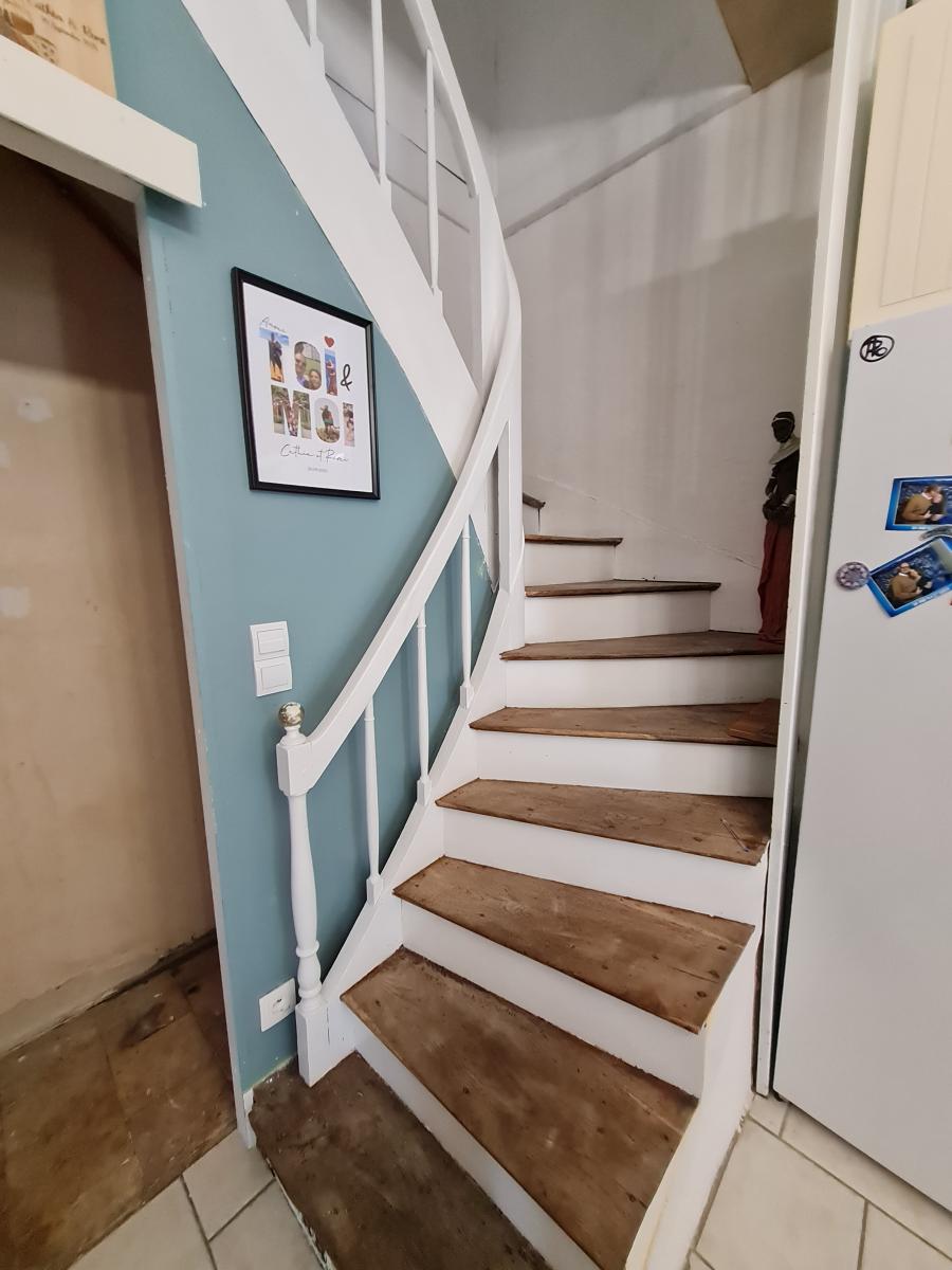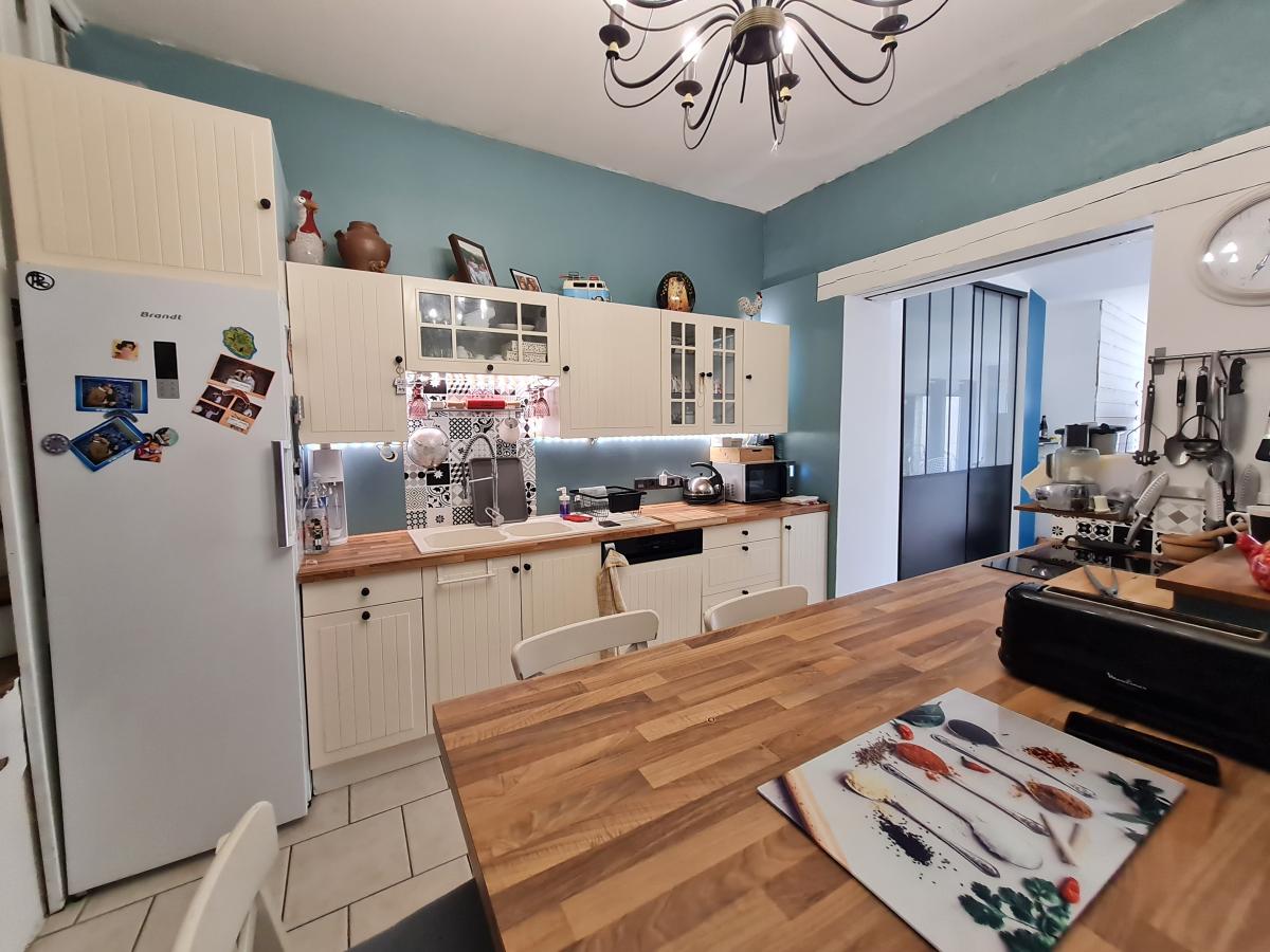 / au rdc: entrée, buanderie, chambre avec salle de douches privative (douche, meuble vasque, WC), salle de douches (meuble vasque, WC, douche italienne), placard, salle à manger avec poêle à bois, cuisine aménagée et équipée (éléments hauts et bas, évier deux bacs, lave-vaisselle, îlot, four, plaque quatre feux électriques), salon, placard, accès cave.