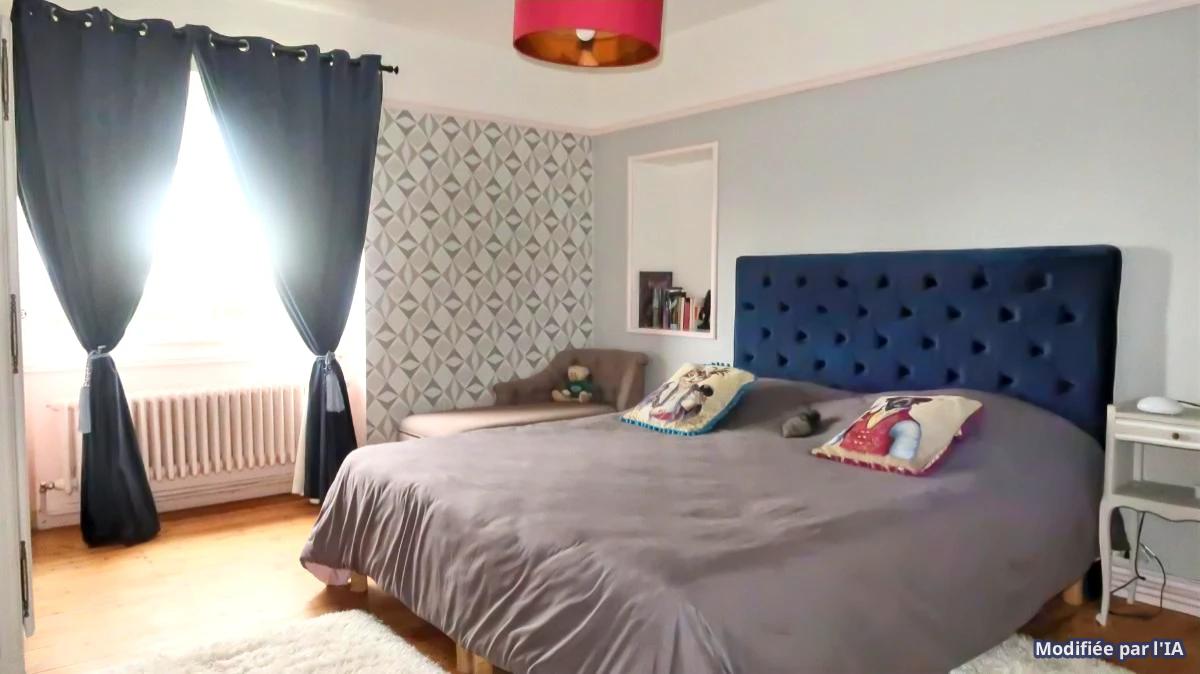 A l'étage : trois chambres dont deux avec rangement intégré (14 m²/14 m²/11 m²), bureau 8 m², WC, dégagement.